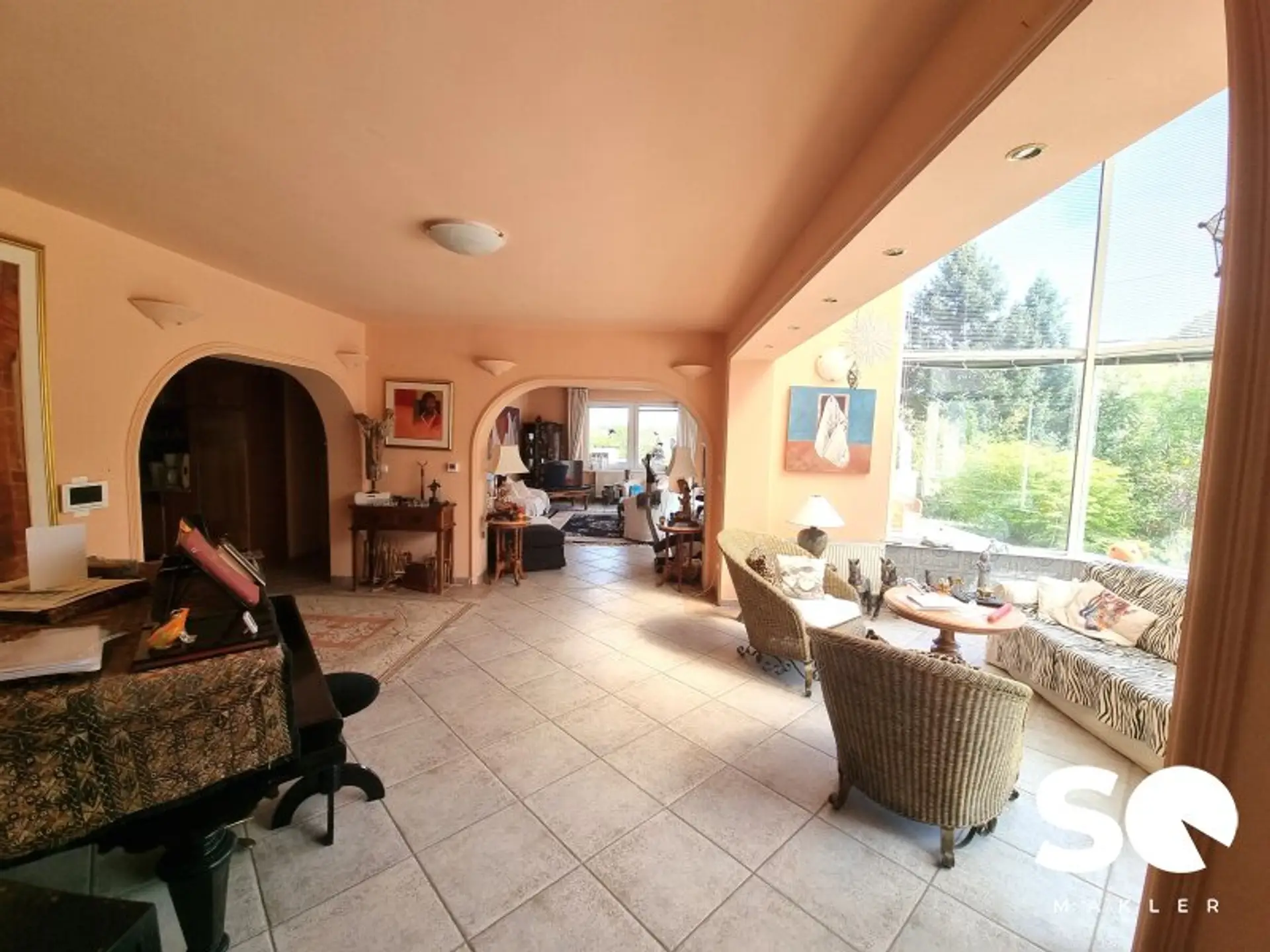 This extraordinary villa, thoughtfully designed with architectural precision, harmoniously combines spaciousness, light, and creative freedom at the highest level. Constructed in 2000 to meet the individual needs of two artists, the property now presents itself as a refined symbiosis of living space, studio, and sanctuary.