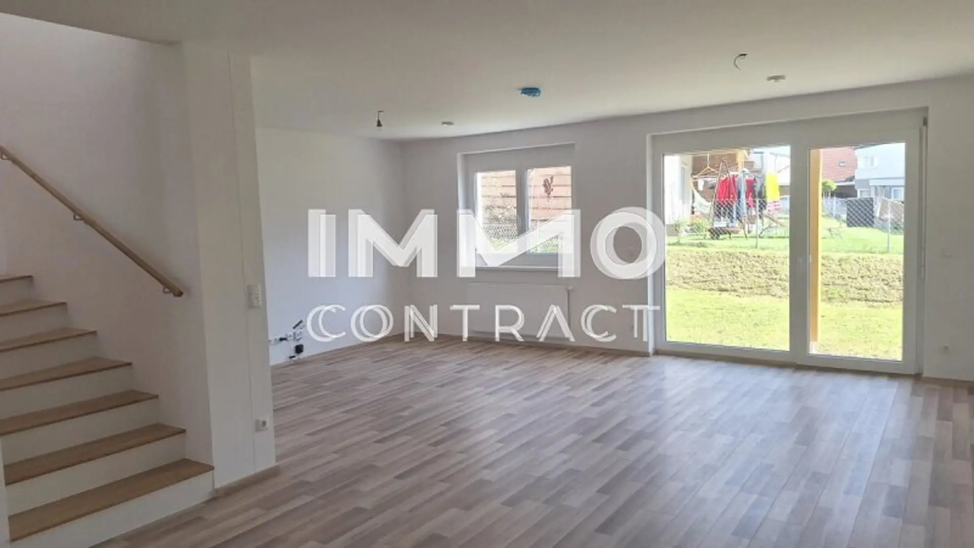 Im Erdgeschoß befinden sich ein Vorraum, Abstellraum, WC sowie ein heller Wohn-Essbereich mit offener Küche. Im Obergeschoß erwarten Sie drei Zimmer, ein modernes Bad und ein zentraler Gang. Der große Kellerraum eignet sich ideal als Hobby- oder Stauraum.