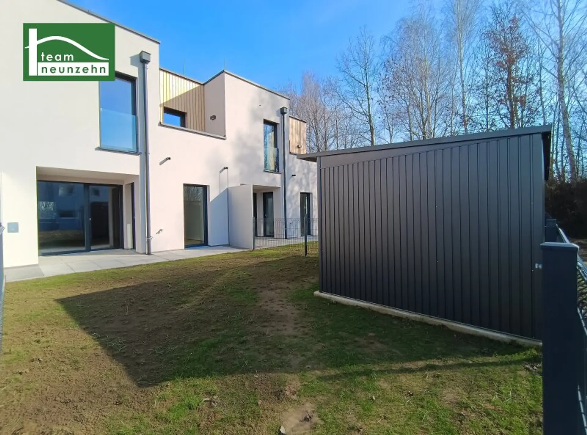 Bei der Ausstattung dieser großartigen Häuser wird nicht gespart und besonders auf hohe Qualität sowie Funktionalität geachtet! In den Wohnräumen werden Eichparkettböden verlegt, während der Vorraum, der Abstellraum und die Nassräume mit Fliesen ausgestattet sind. Für ein optimales Raumklima wird mittels Fußbodenheizung und kontrollierte Wohnraumlüftung gesorgt. Durch die 3-Scheiben Isolierverglasung der Fenster kommt jede Menge Tageslicht in die Räume. Per Fernbedienung kann die Lichteinstrahlung dank der außenliegenden Rollläden ganz einfach reguliert werden. Als private Außenflächen befinden sich bei jedem Haus eine Terrasse und ein Eigengarten im Erdgeschoss sowie zwei Balkone im Obergeschoss. Zusätzlich Stauraum bietet die hauseigne Gartenhütte. Jedes Haus ist außerdem mit einer eigenen Photovoltaikanlage ausgestattet, die den Eigenbedarf abdecken sollte.