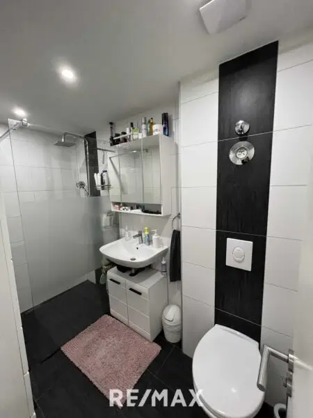 Im Erdgeschoß befindet sich derzeit ein ca. 45 m² großes Geschäftslokal (ideal auch als Praxis oder Kanzlei) mit Bad/WC. (Diese Ebene kann auch als Wohnraum genutzt und die Wohnfläche auf etwa 80 m² erweitert werden.)