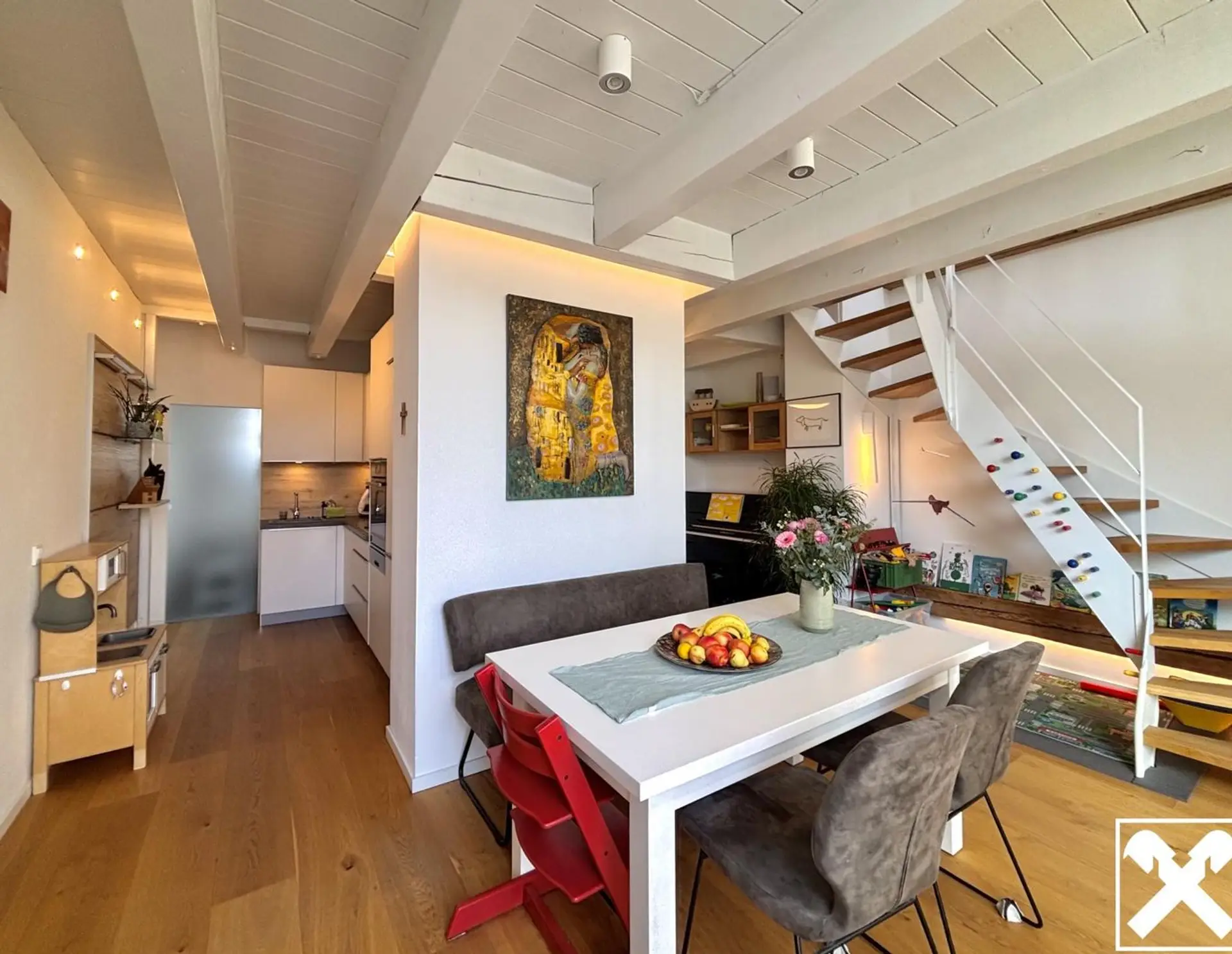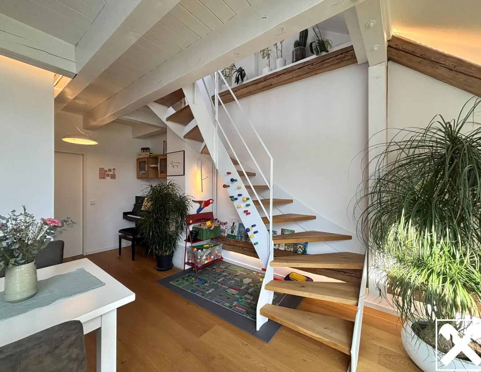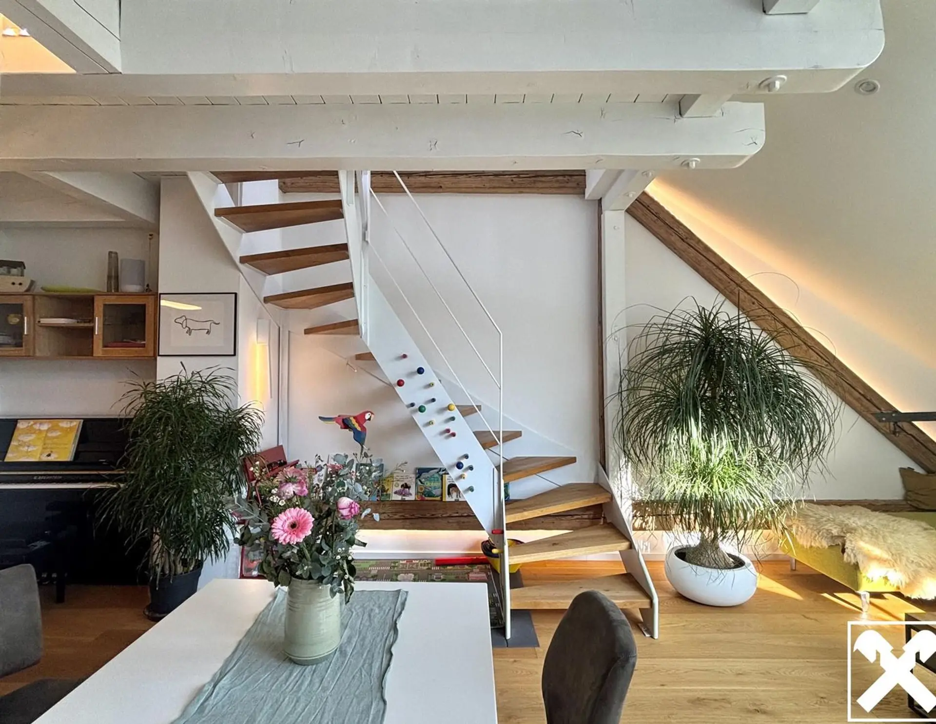 Wohnhaus um die Jahrhundertwende! Zwei Ebenen, viel Licht und ein einzigartiger Ausblick in alle Himmelsrichtungen! Diese charmante, gepflegte und sanierte Wohnung mit riesigen Fensterflächen sorgt für ein angen…
