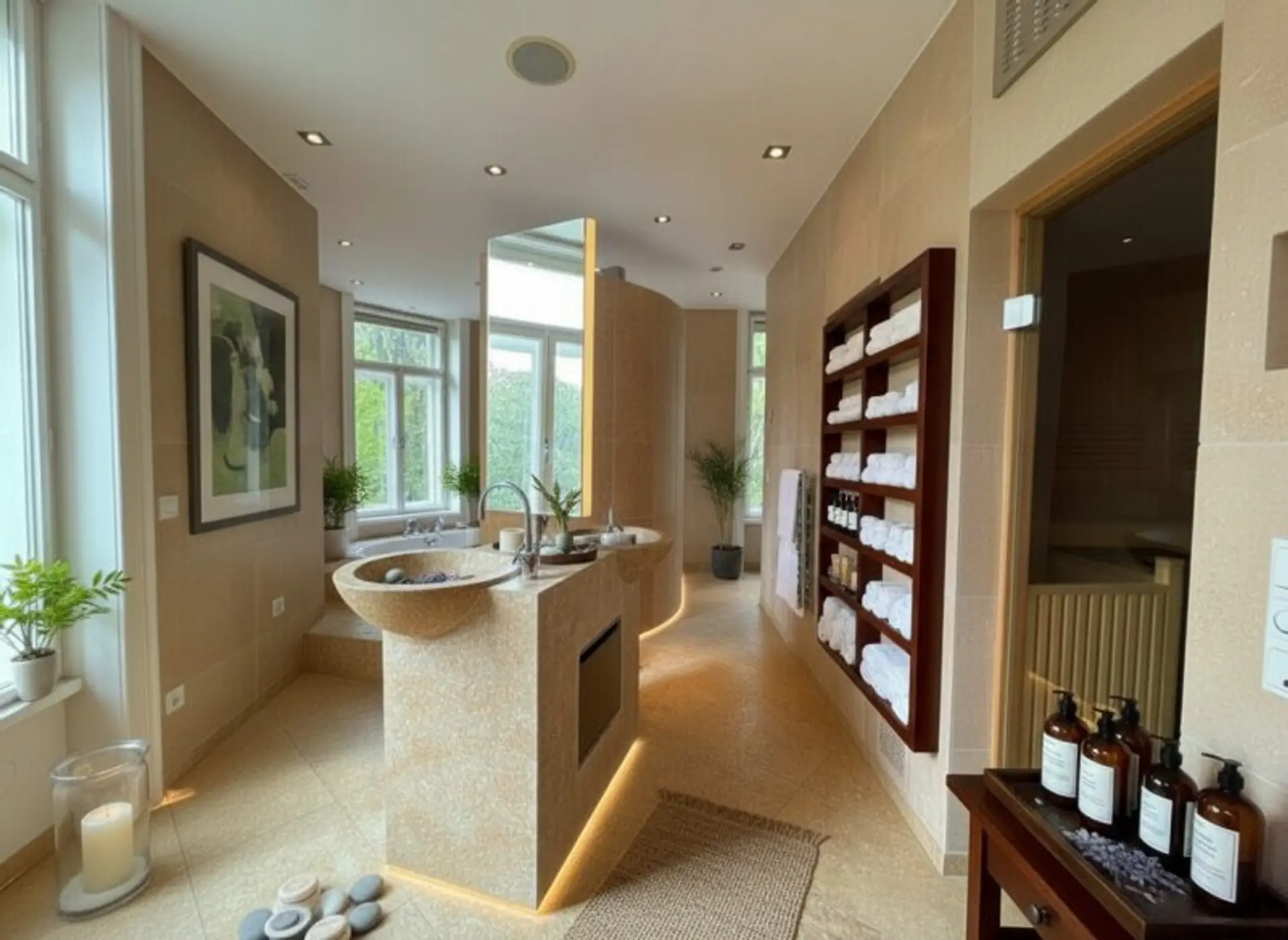 Masterbedroom mit Zugang zum Spabereich (Sauna, Dampfbad, Regenfalldusche, etc.)