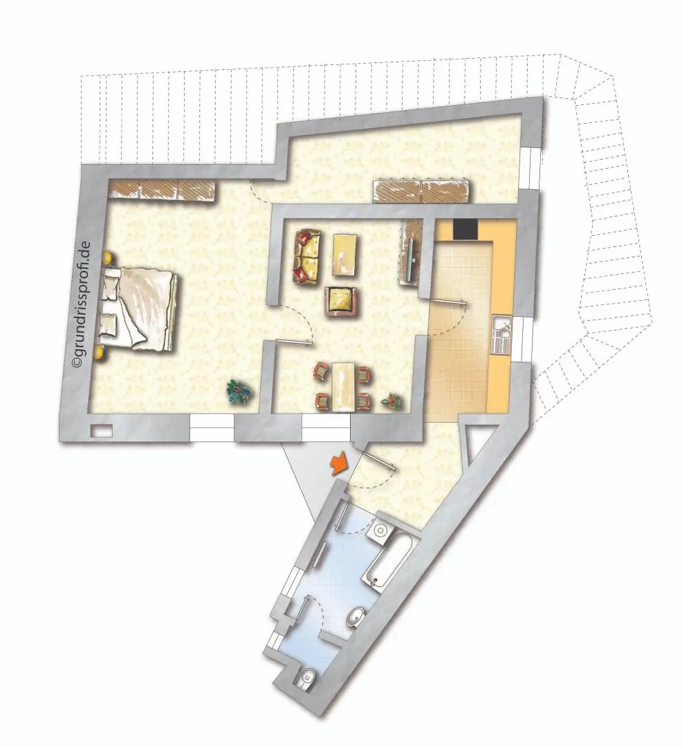 Die vorhandene Wohnfläche von ca. 83 m² gliedert sich wie folgt: