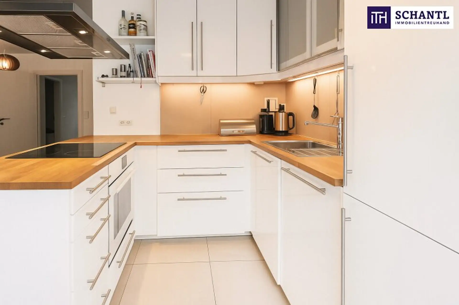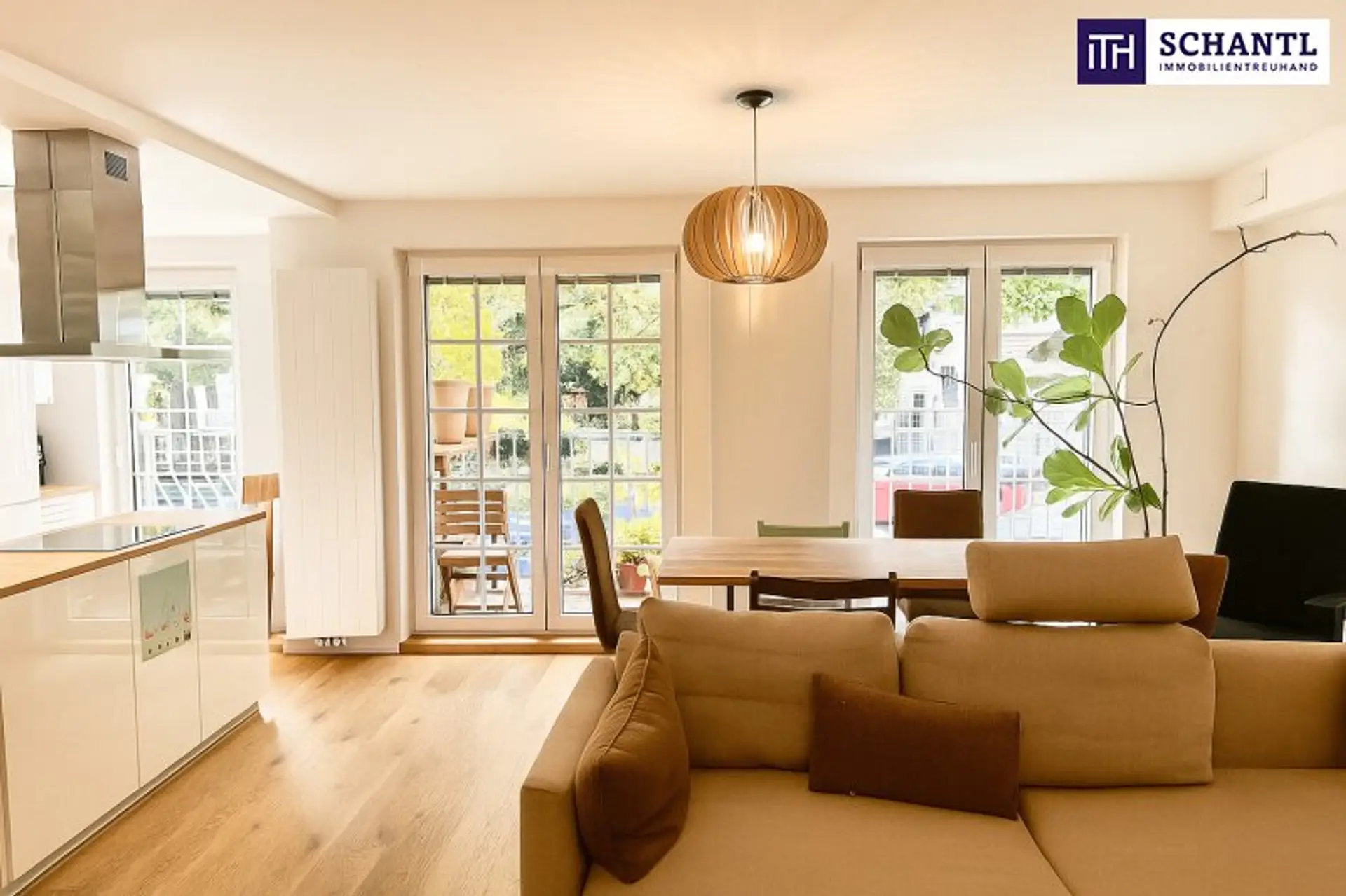 - Eine lichtdurchflutete Wohnküche mit französischen Fenstern, Echtholzparkett und Zugang zum charmanten Balkon – der perfekte Raum für stilvolles Wohnen, gemeinsames Kochen und entspannte Abende.
