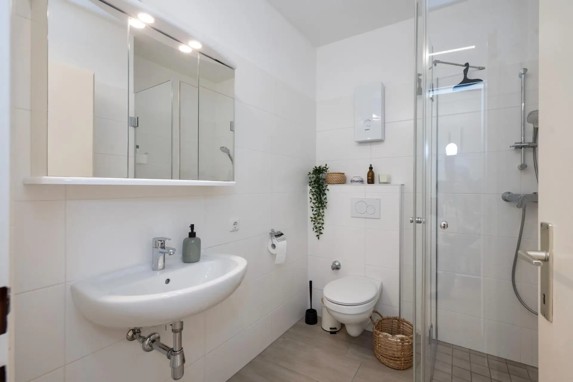 Im Erdgeschoss und im Dachgeschoss befinden sich jeweils vier kompakt geschnittene Wohneinheiten mit Wohnflächen von ca. 30 bis 37 m². Jede Wohnung verfügt über ein Vorzimmer/Garderobe, einen offenen Wohn-, Koch- und Essbereich, ein Schlafzimmer sowie ein Badezimmer mit WC. Die Erdgeschosswohnungen bieten zusätzlich eine Terrasse; bei den beiden südseitig ausgerichteten Einheiten schließt an die Terrasse jeweils auch eine eigene Garten-/Grünfläche an.