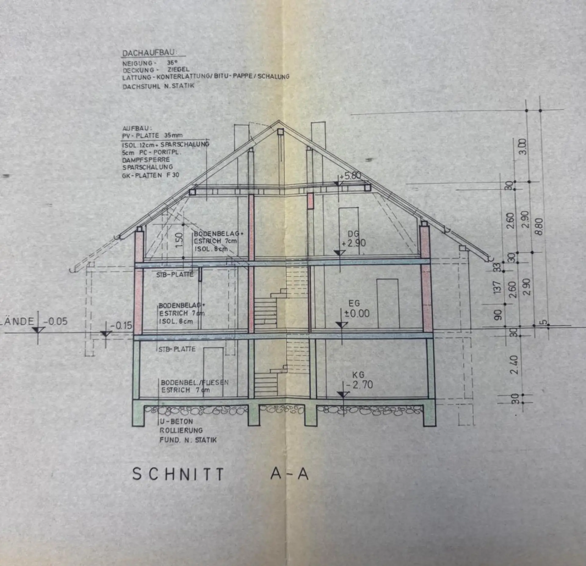 Die Liegenschaft erstreckt sich über ein Grundstück von ca. 572 m² und bietet auf drei Ebenen (Kellergeschoss, Erdgeschoss und Dachgeschoss) eine Wohn- und Nutzfläche von ca. 472,26 m². Das Wohnhaus überzeugt durch seine Langlebigkeit, Robustheit und die Verwendung wertbeständiger Materialien. Zudem wurde bei der Konzeption gezielt darauf geachtet, für alle Bewohner ein hohes Maß an Ruhe und Privatsphäre zu gewährleisten.