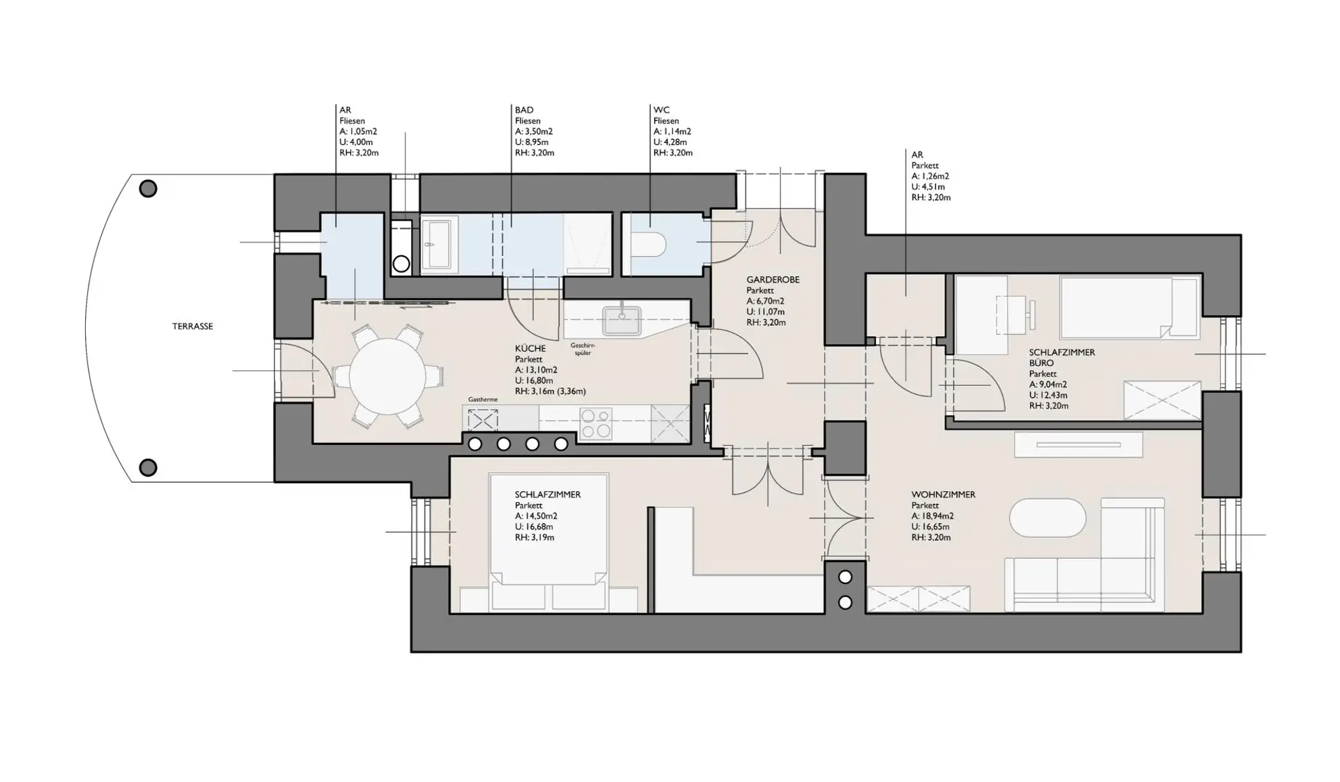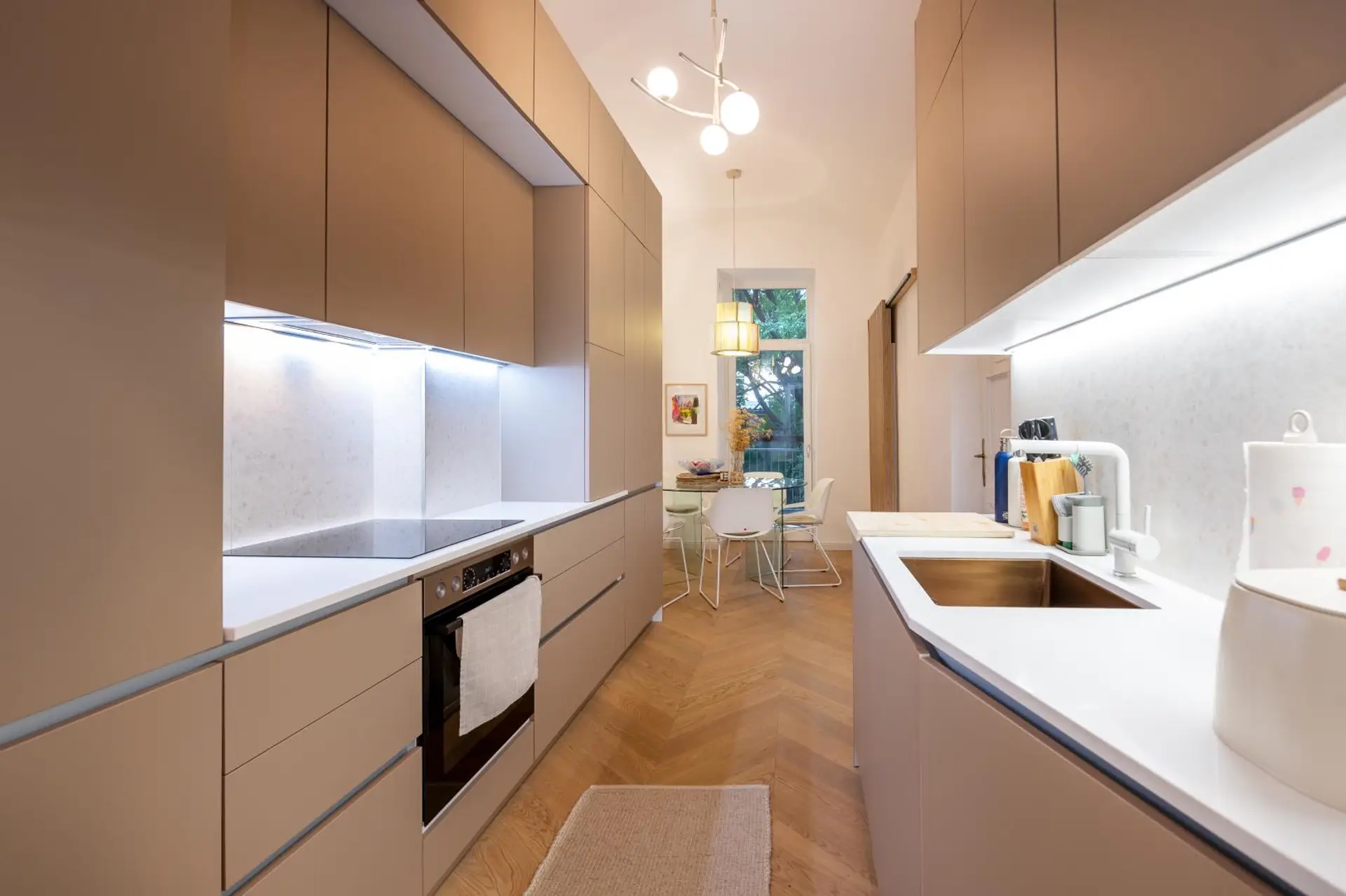 Eine neue Einbauküche, ein neues Bad und neues WC unterstreichen die stilechte Sanierung.