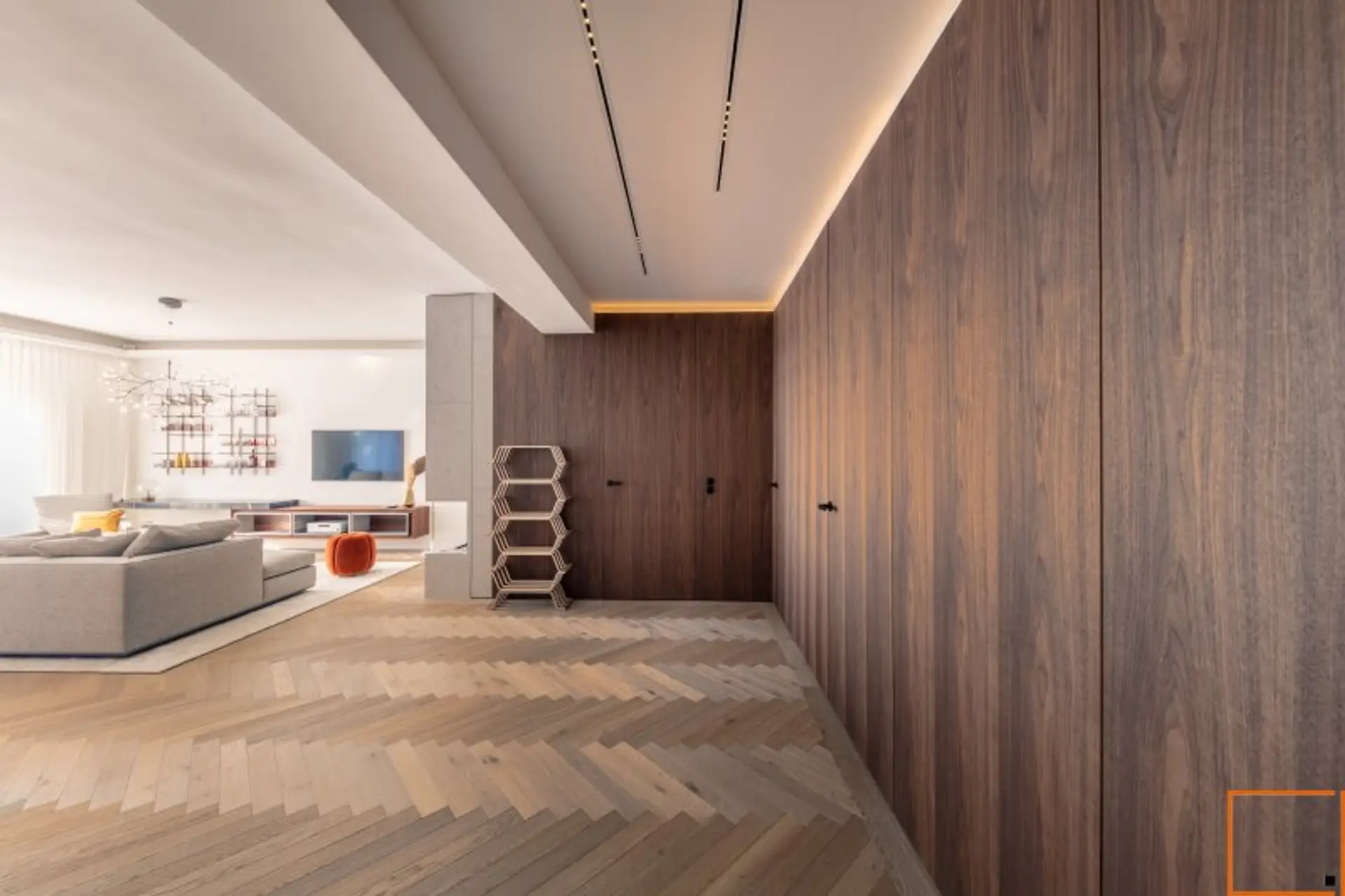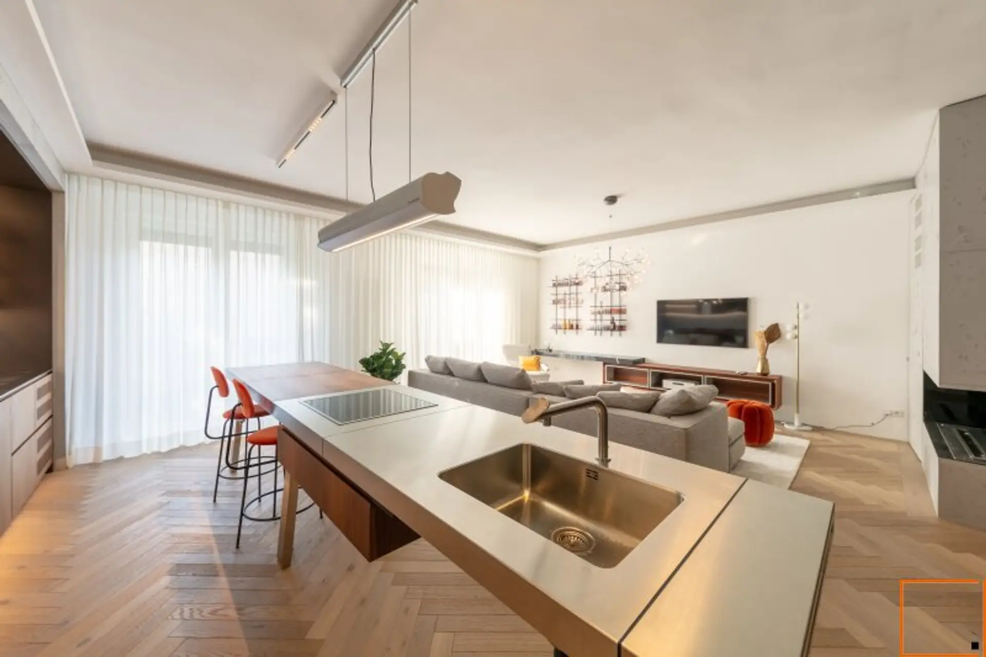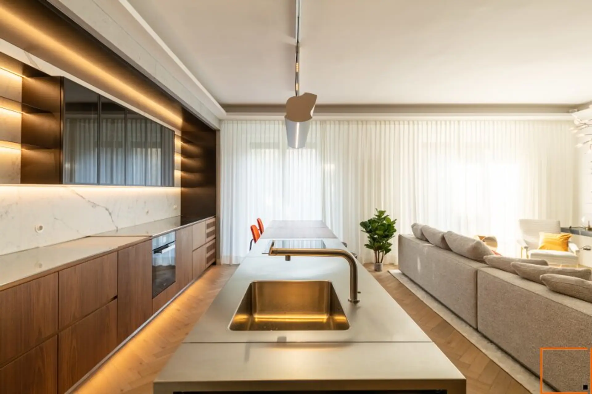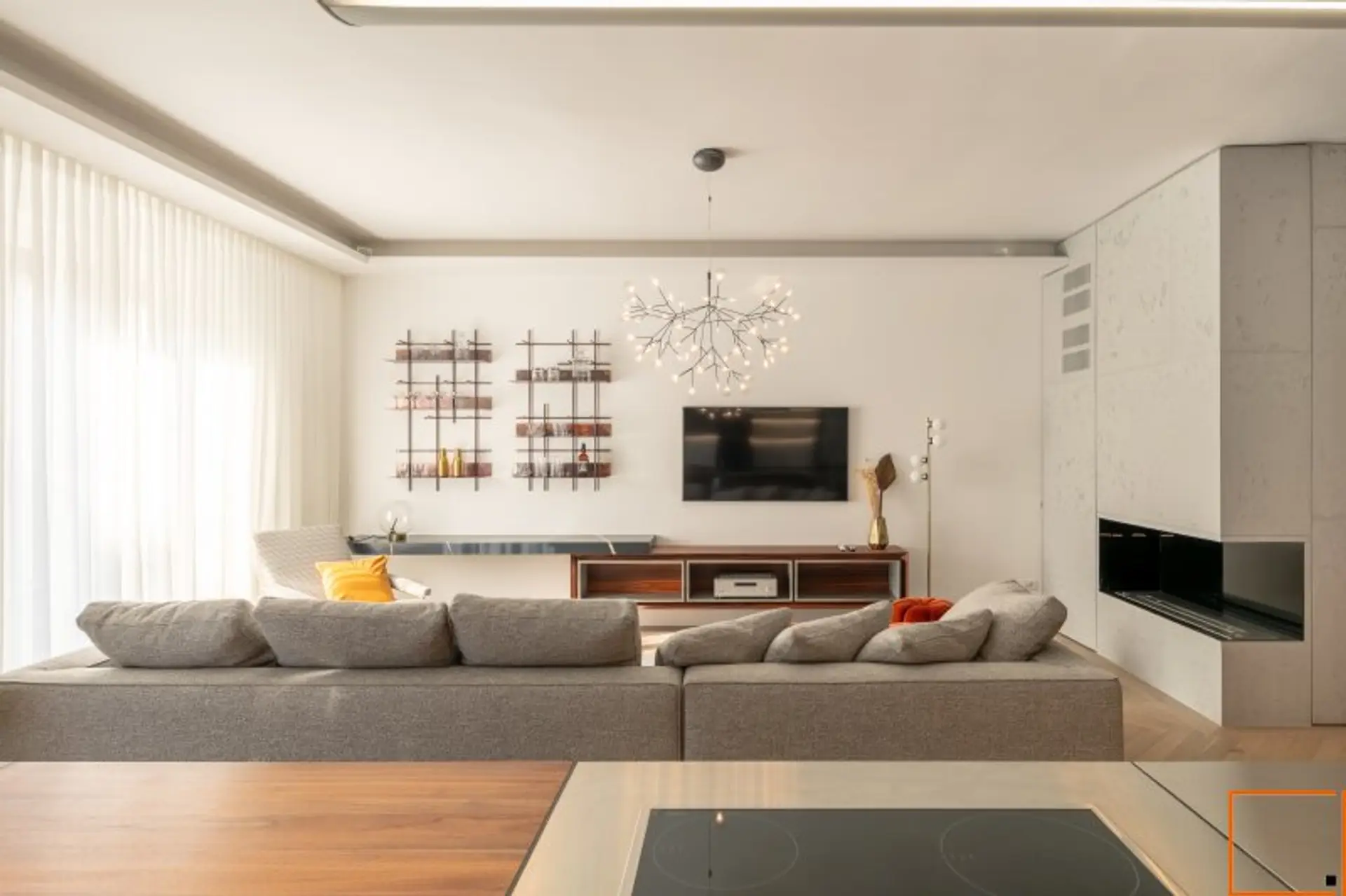 Ein besonders edler Parkettboden - französisch verlegt, eine Top-Bulthaup-Küche inklusive aller Geräte sowie 2 geschmackvolle Schlafzimmer, eine begehbare Garderobe, Bad und WC - alles ist aus einem Guss, die maßgeschneiderten Holzverbauten in klassischem amerikanischen Walnussholz mit indirekter Beleuchtung vollenden die Perfektion dieser Immobilie.
