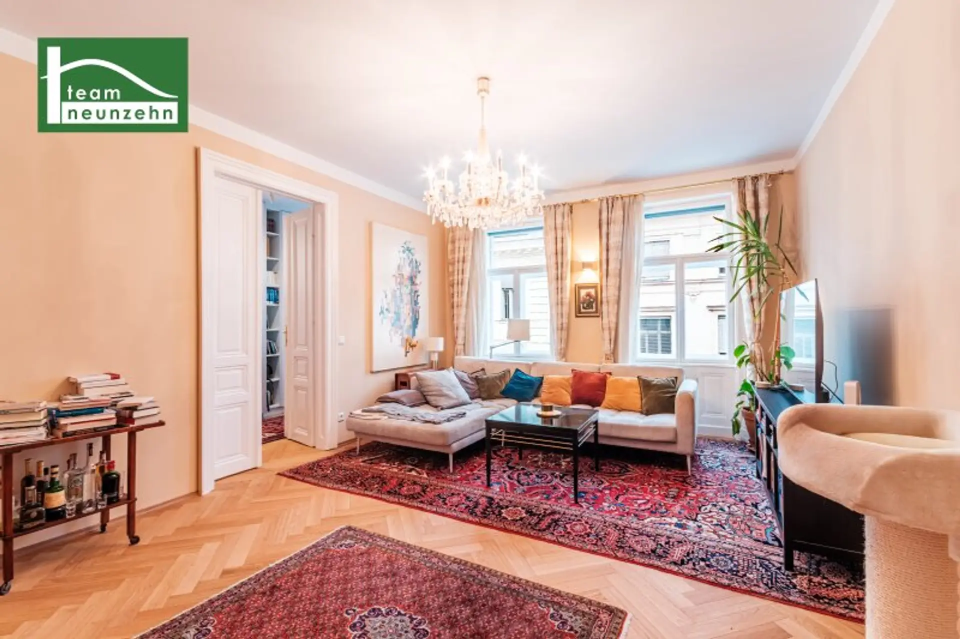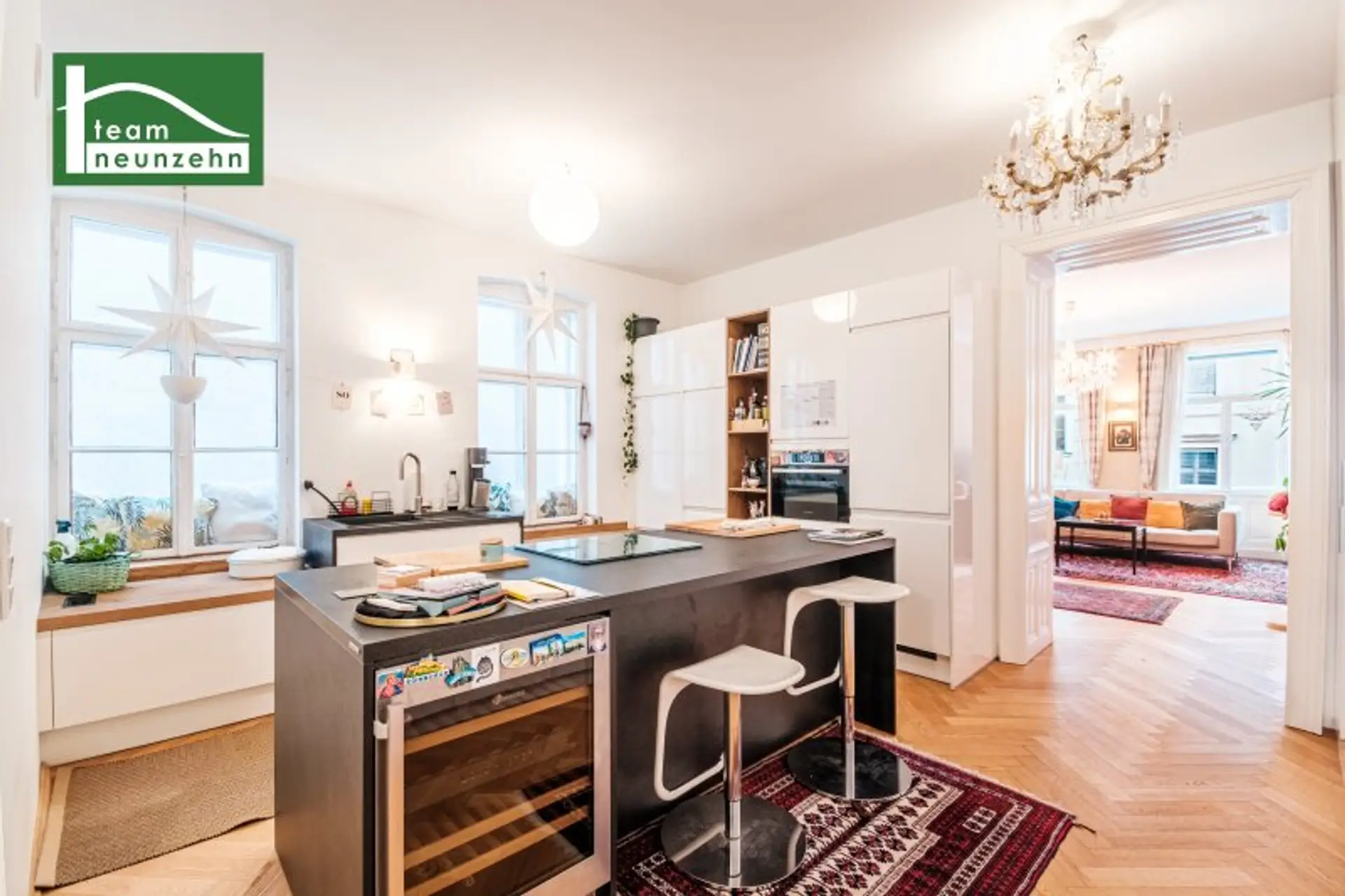 Inmitten des begehrten 9. Wiener Gemeindebezirks, nur wenige Schritte vom Donaukanal, dem beliebten Servitenviertel und der U4-Station Friedensbrücke entfernt, erwartet Sie diese stilvoll kernsanierte 4-Zimmer-Eigentumswohnung mit rund 94,65 m² Wohnfläche im vierten Liftstock eines gepflegten Altbaus aus 1892.