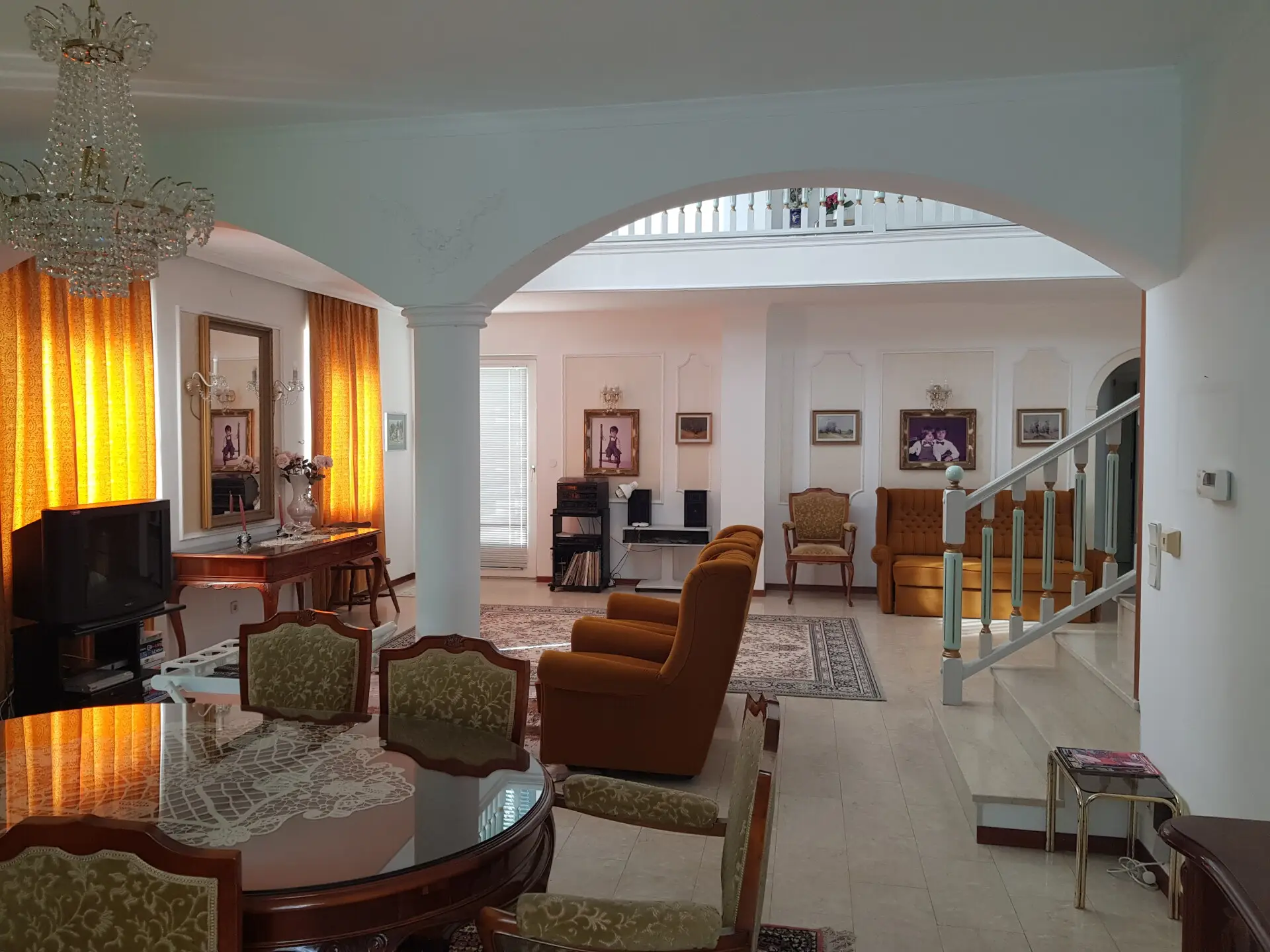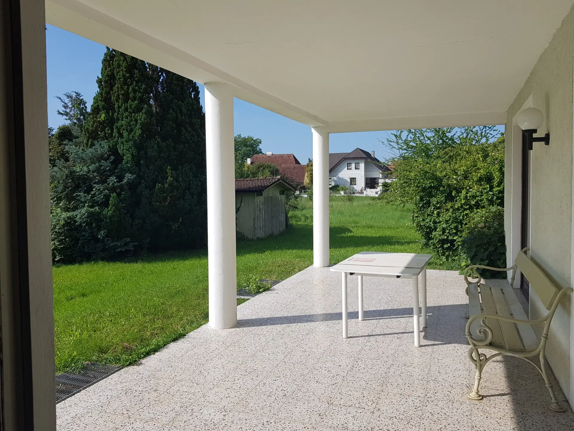 Über den liebevollen Vorgarten mit Altbaumbestand und parkähnlichem Garten gelangen Sie über den Haupteingang in einen großzügigen Vorraum mit Garderobenbereich. Sämtliche Wohnräume im Erdgeschoß sind zentral begehbar. Im Erdgeschoss begrüßt Sie ein stilvoller Eingangsbereich, eine möblierte Küche, ein Wohnesssalon mit direktem Ausgang auf die herrliche Sonnenterrasse sowie drei Schlafzimmer und ein Badezimmer mit Badewanne und Dusche sowie ein separates WC.
