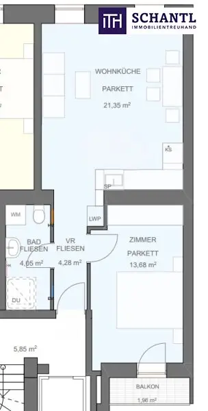 Wohnfläche 43,36 m² + 1,96 m² Balkon