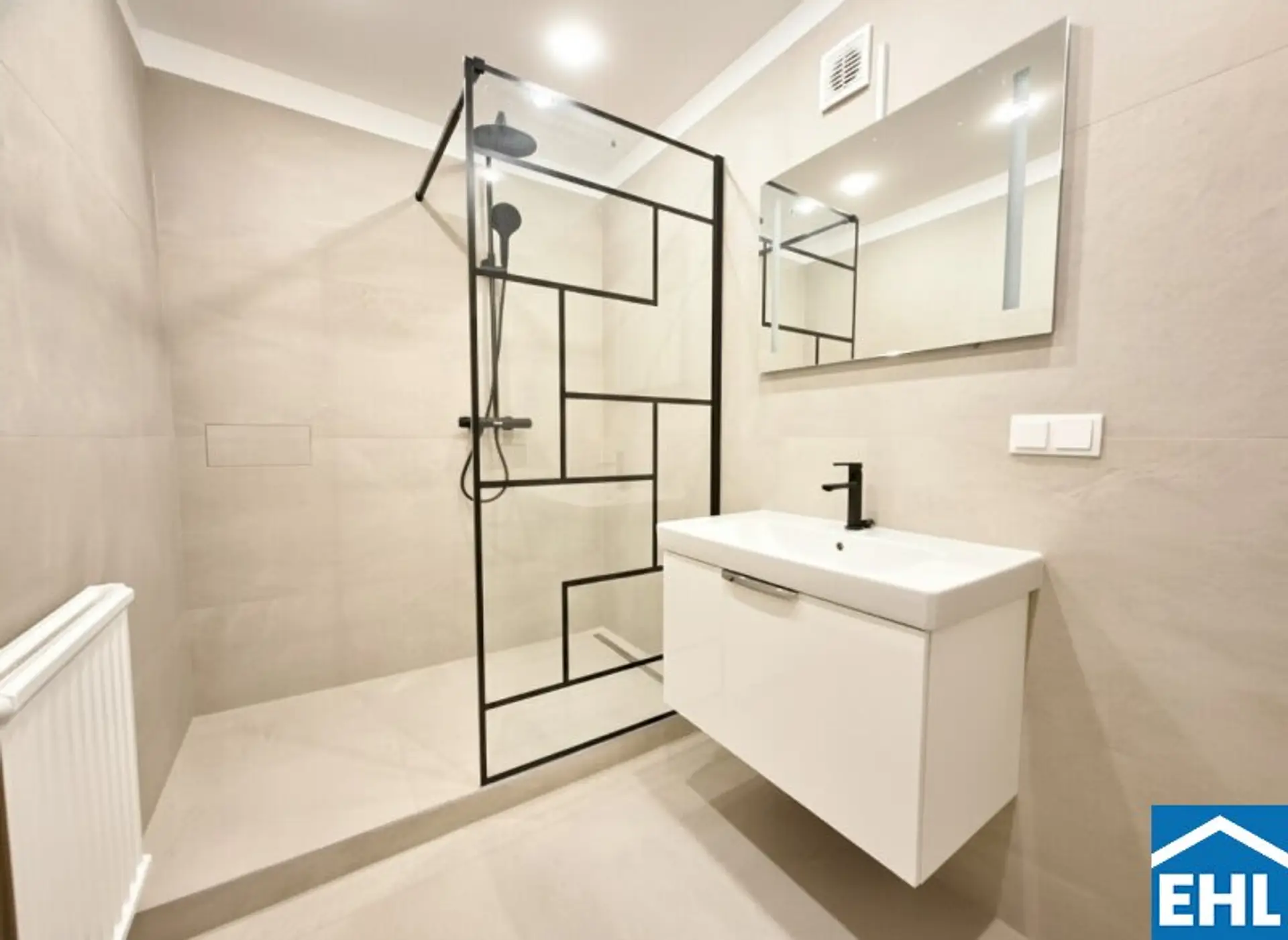 Die Wohnung wurde umfassend und mit viel Liebe zum Detail saniert: Neue Elektro- und Steigleitungen sorgen für zeitgemäßen Komfort. Edles Weizer Parkett, hochwertige Feinsteinzeug-Fliesen von Quester sowie eine moderne Einbauküche von XXXLutz unterstreichen den gehobenen Anspruch. Das stilvolle Badezimmer mit Elementen von Villeroy & Boch rundet das Gesamtbild ab.