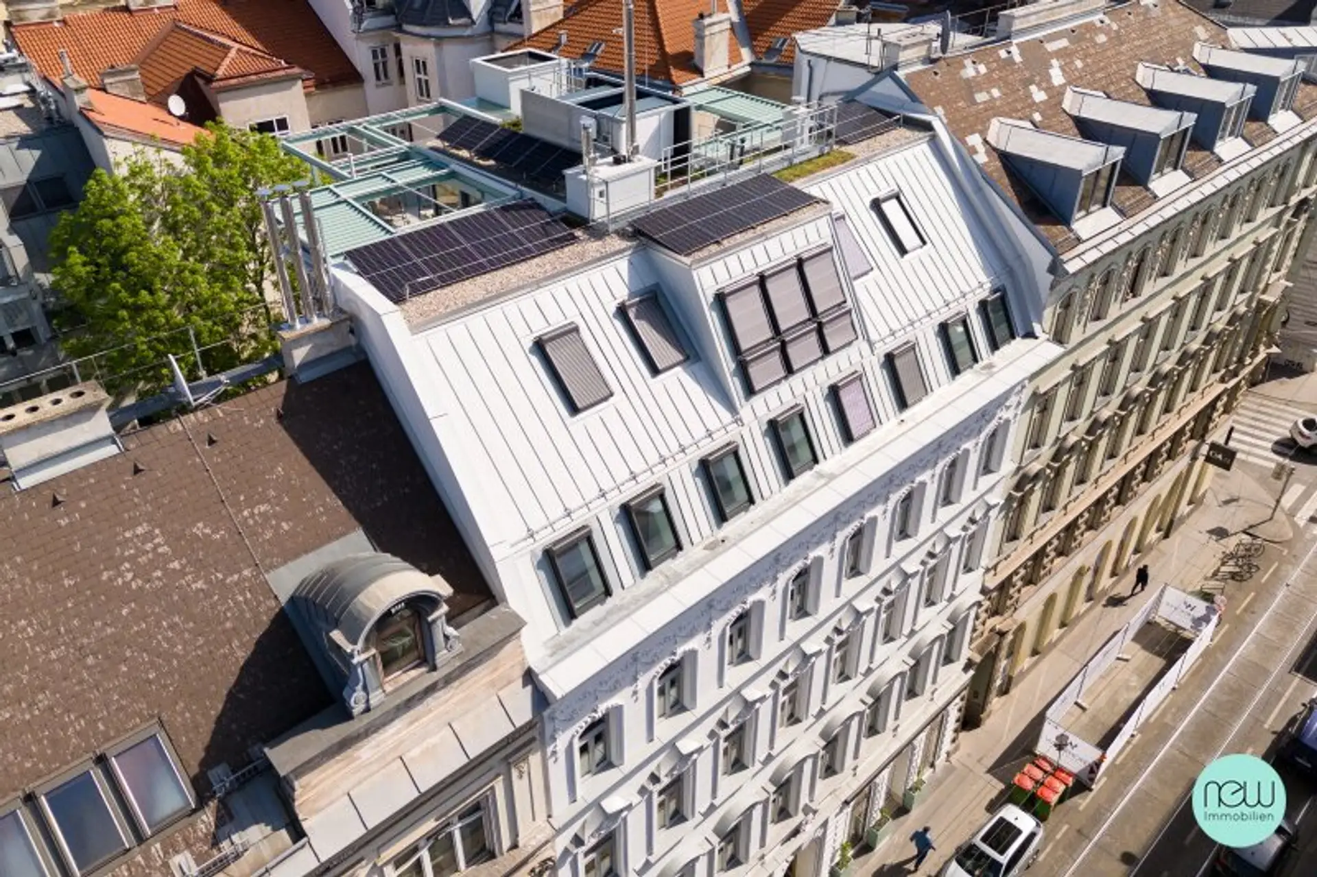 Bei der Gebäudeausstattung wurde auf zukunftsweisende (klimaaktive) Technik gesetzt: Beheizung über eine energieeffiziente Luftwasserpumpe, Stromversorgung durch Photovoltaik, Sanierung der schönen gegliederten Fassade durch eine Innendämmung sowie eine begrünte Fassade, die das Mikroklima verbessert. Die Wohnung verfügt über eine Fußbodenheizung mit Fußbodentemperierung und perfekt isolierte 3-fachverglaste Holz-Alufenster.