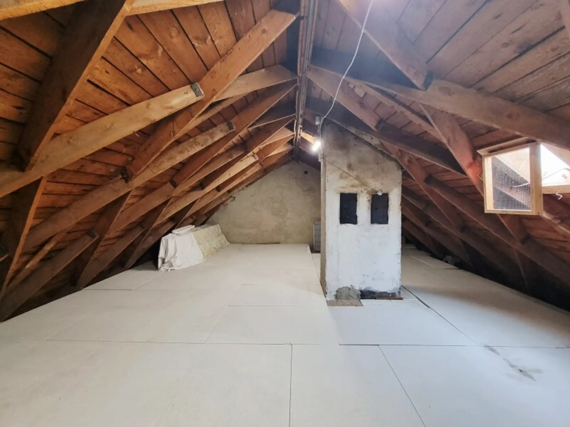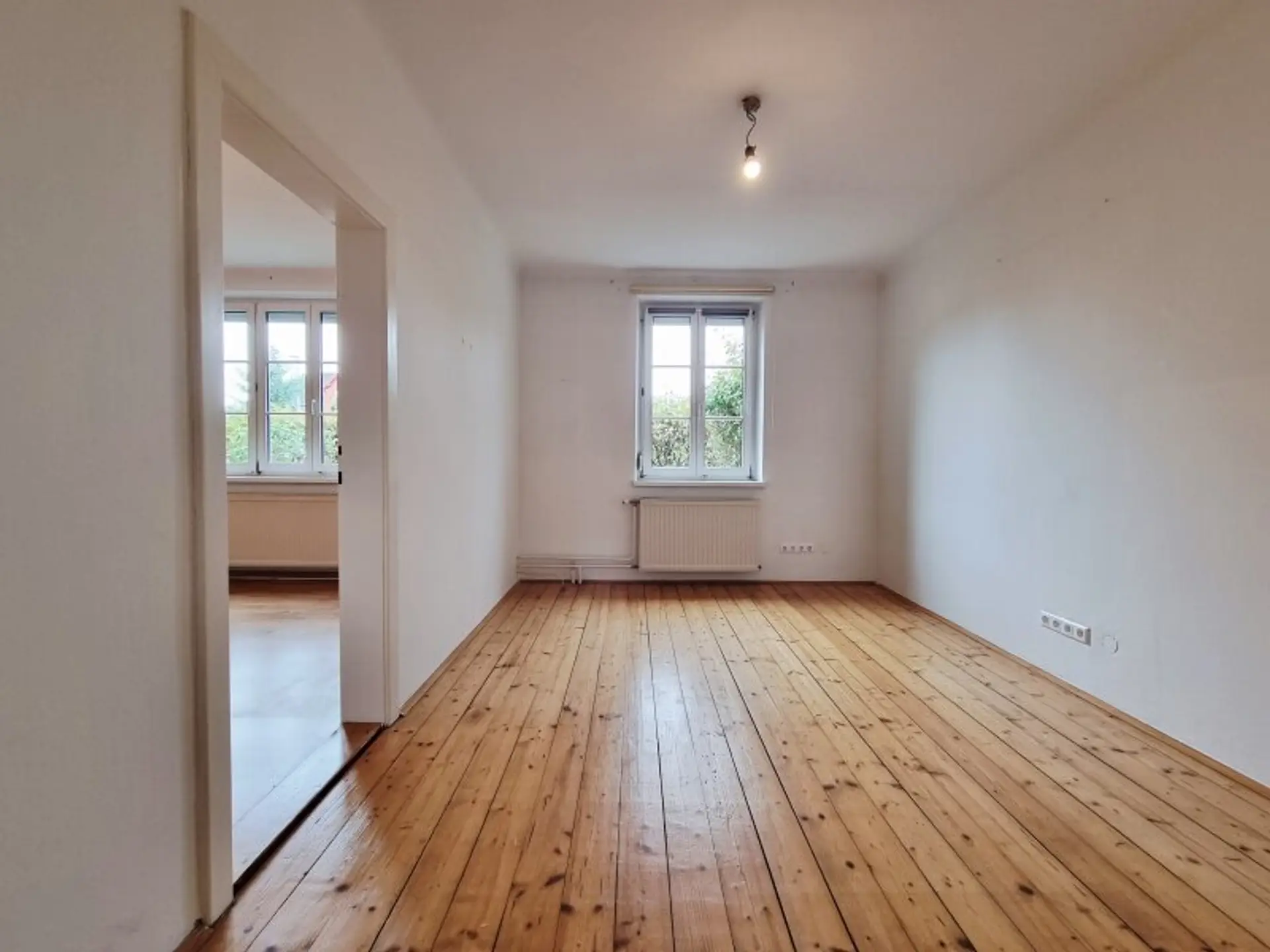 Raumprogramm: Das Erdgeschoss empfängt mit einem Windfang und Vorzimmer, einem gemütlichen Wohnzimmer, einem zusätzlichen Zimmer, einer Küche sowie einem Gäste-WC. Ein praktischer Wirtschafts- bzw. Abstellraum ergänzt das Raumangebot. Das zentral gelegene Treppenhaus verbindet alle Ebenen, vom Keller über das Obergeschoss bis hin zum Dachboden. Im Obergeschoss erwarten Sie ein zentraler Flur, drei helle Zimmer sowie ein großzügiges Tageslichtbad mit Badewanne, Dusche und WC