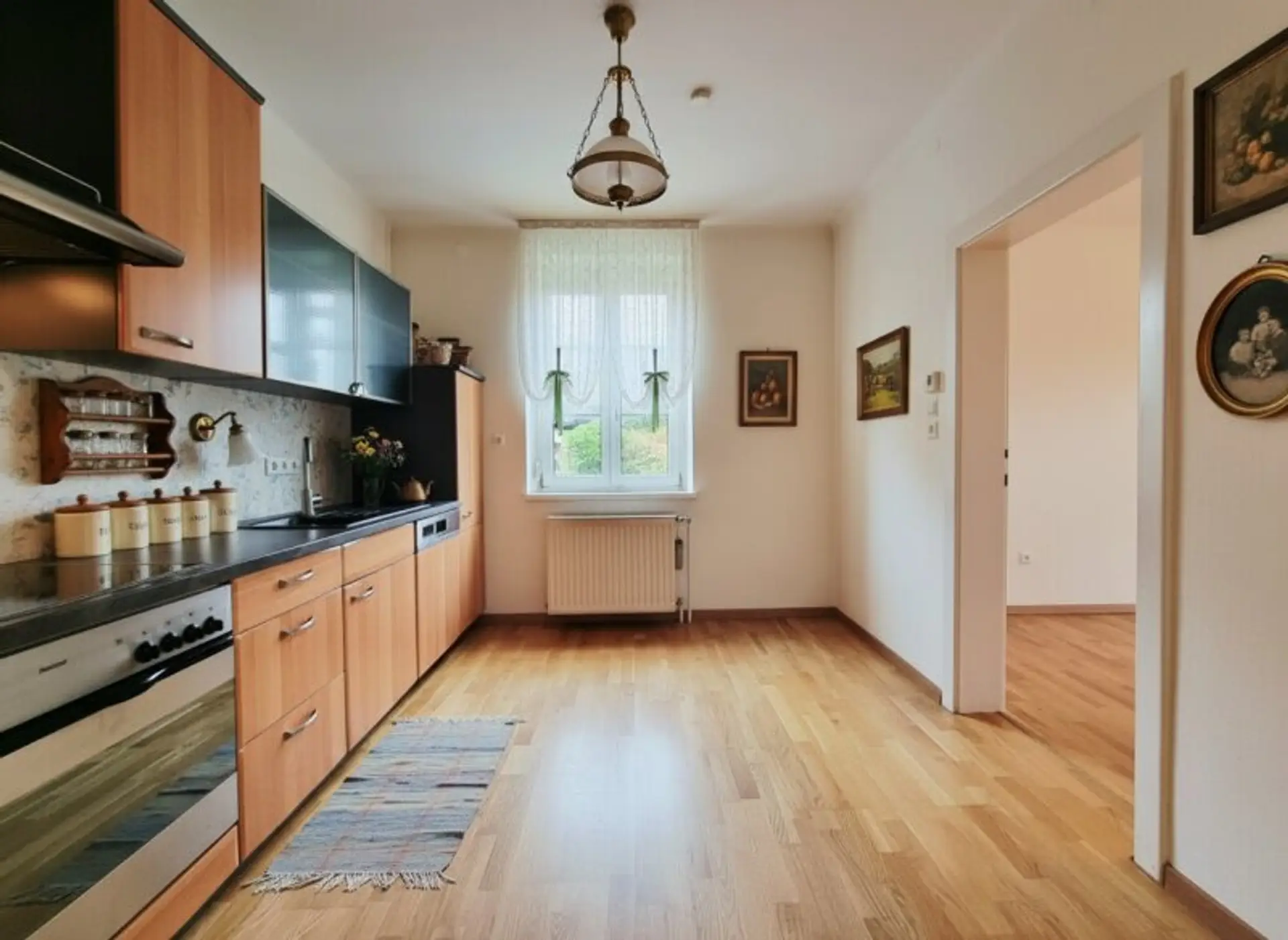 Ausstattung: Fliesen- und Granitbeläge, klassische Parkettböden, Schiffböden sowie Laminat in ausgewählten Bereichen sorgen für ein stimmiges Raumgefühl. Die Küche ist mit einer komplett ausgestatteten Küchenzeile inklusive aller gängigen Elektrogeräte versehen