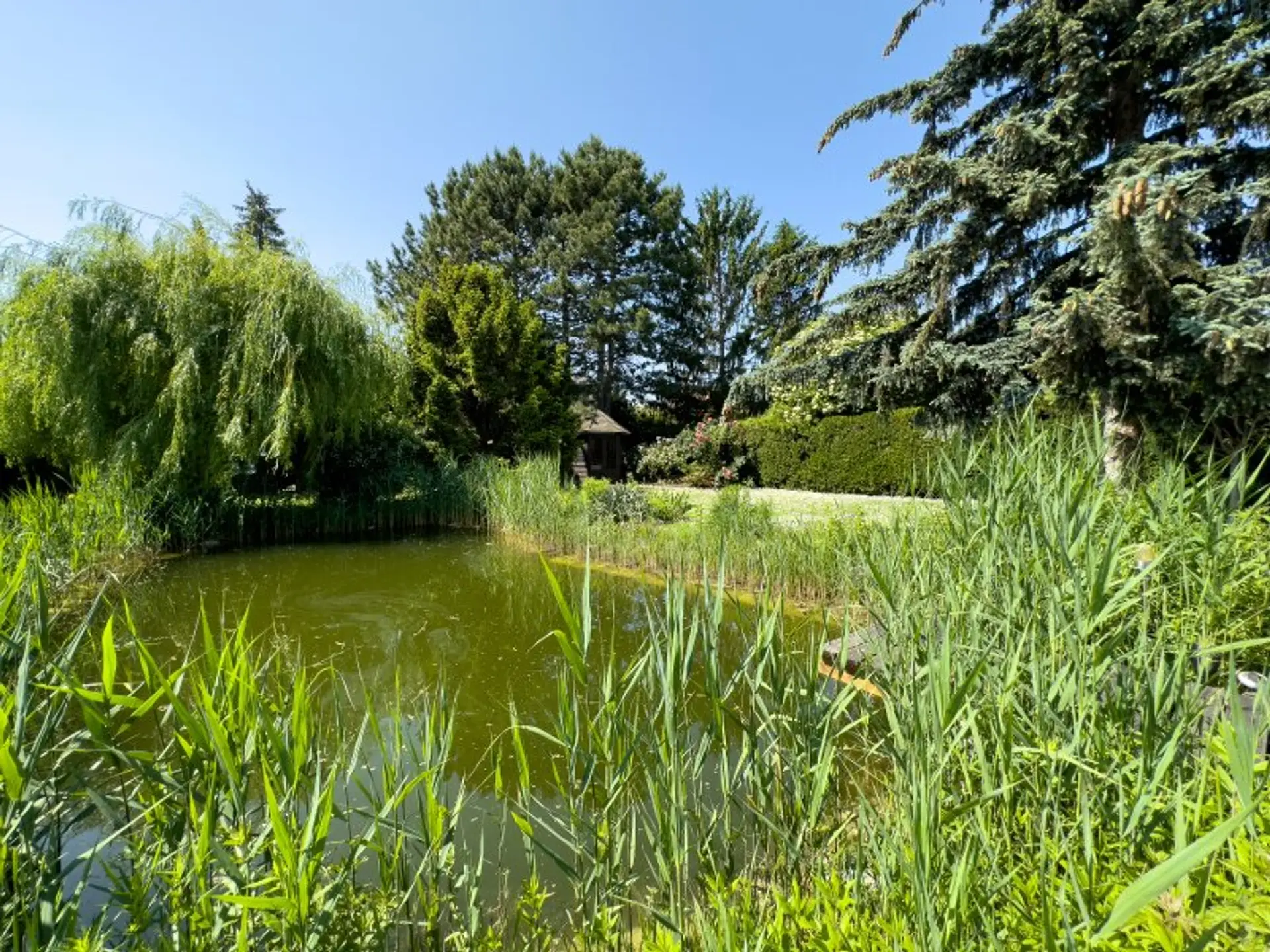Das Highlight des Hauses ist zweifellos der große Garten, der von einer gepflegten Hecke umgeben ist. Der Teich, im Verbund mit einer großen Terrasse, bildet das Wohlfühl-Zentrum des Gartens und reichlich Platz für Wasserpflanzen und Fische. Der Garten bietet viel Raum für Kinder zum Spielen oder zum Entspannen und Verweilen im Freien.