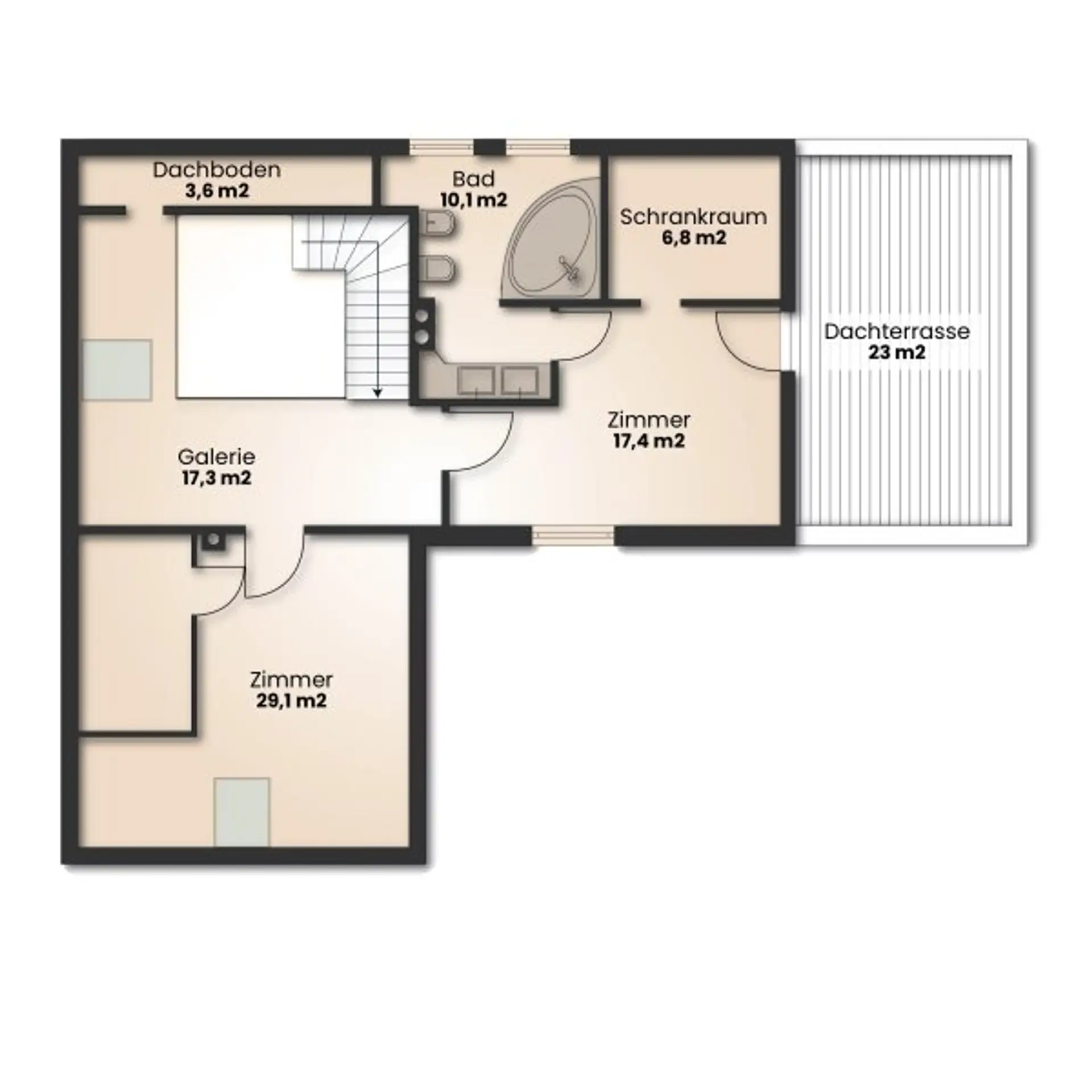 - Dachterrasse mit 23 m²