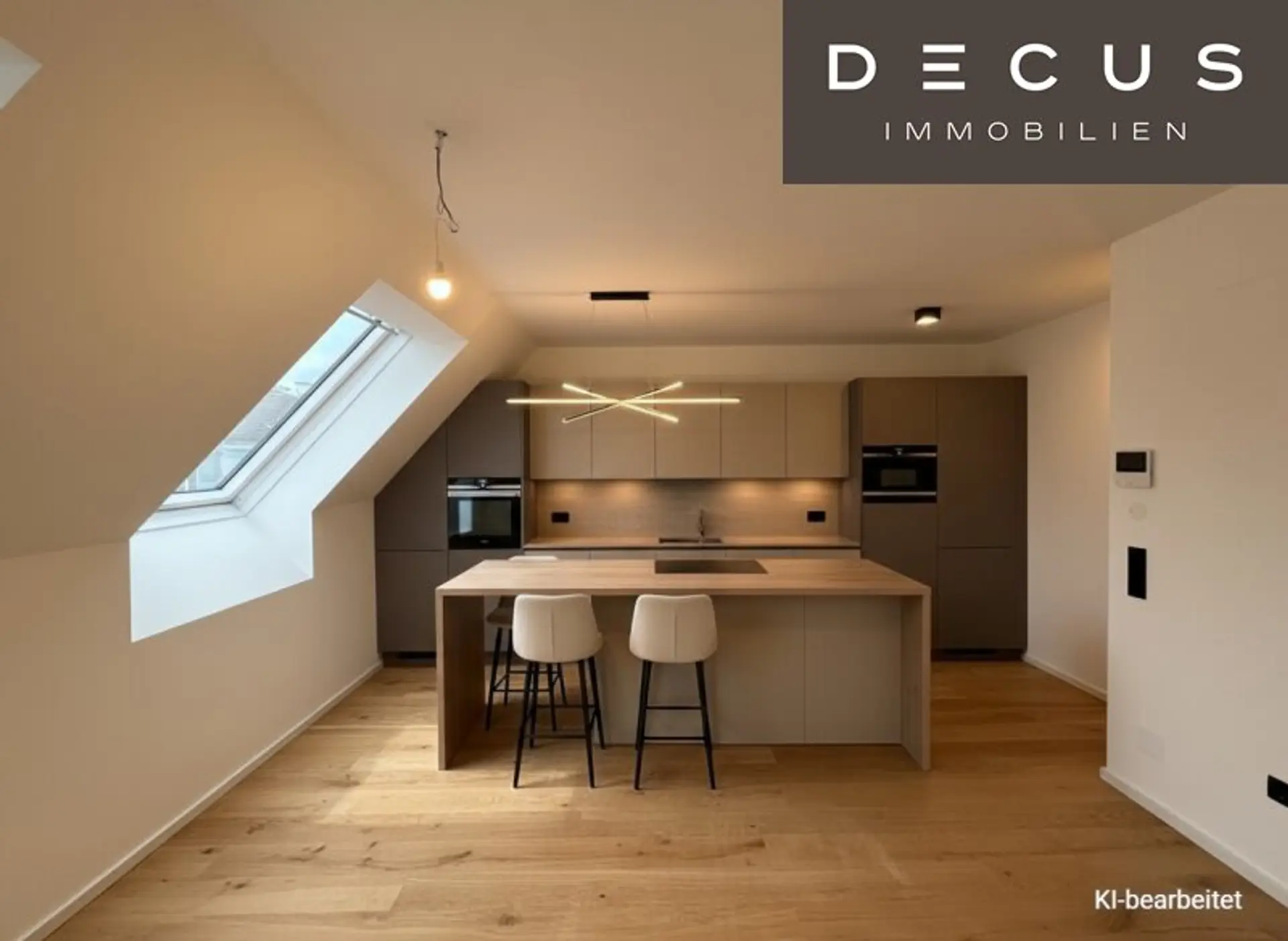 Diese geschmackvoll ausgeführte 2-Zimmer-Dachgeschosswohnung vereint moderne Architektur, hochwertige Materialien und ein besonders durchdachtes Raumkonzept zu einem Wohngefühl mit ruhiger Eleganz. Auf kompakter Fläche entsteht hier ein Zuhause, das sowohl funktional als auch atmosphärisch überzeugt.