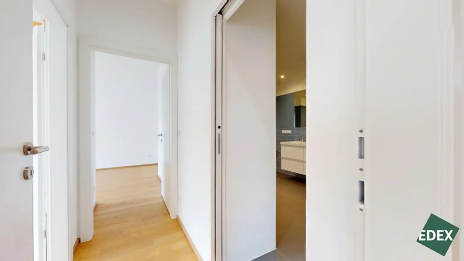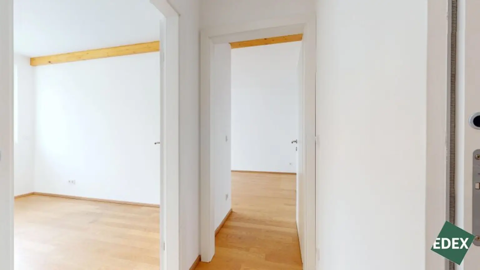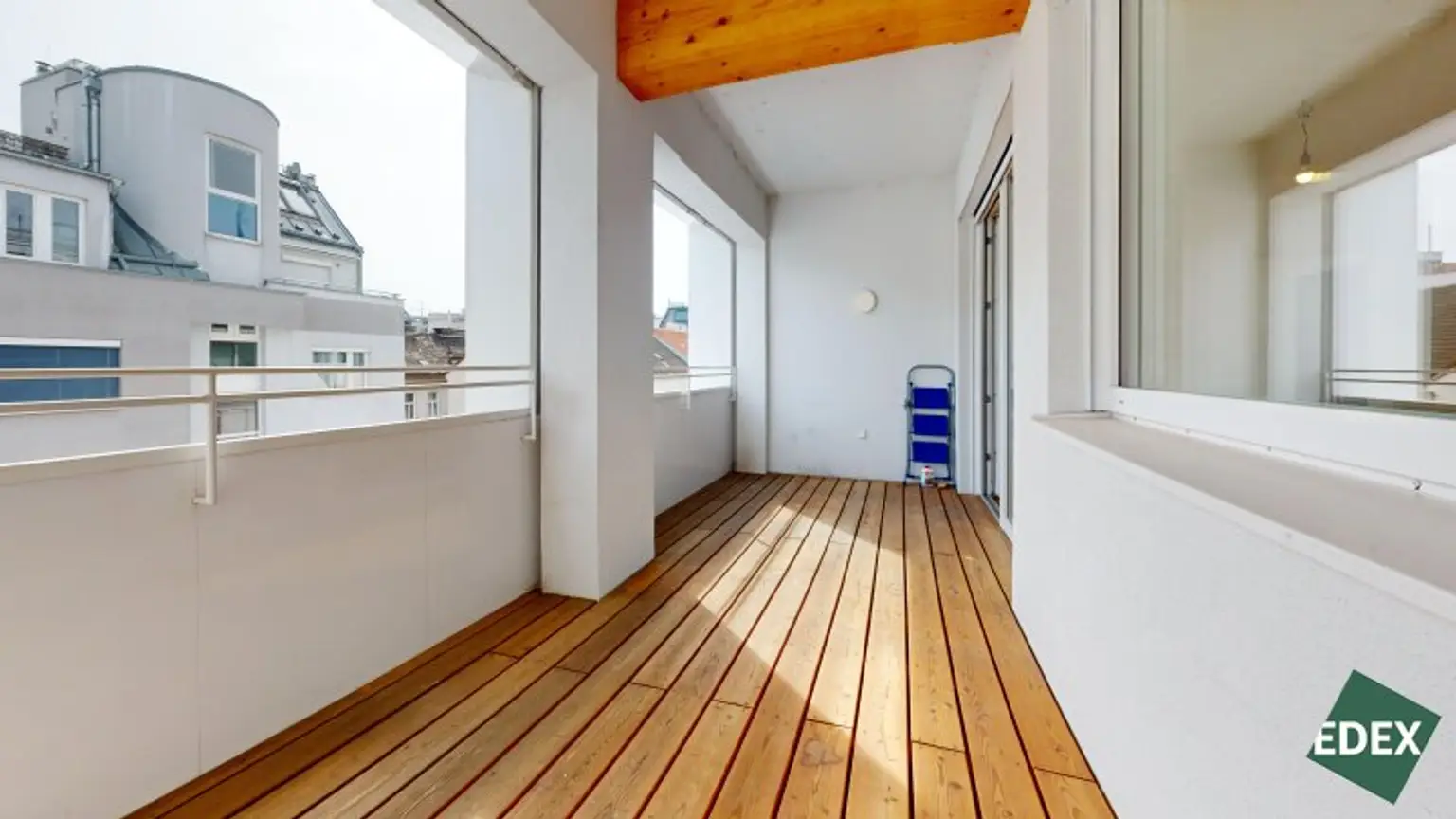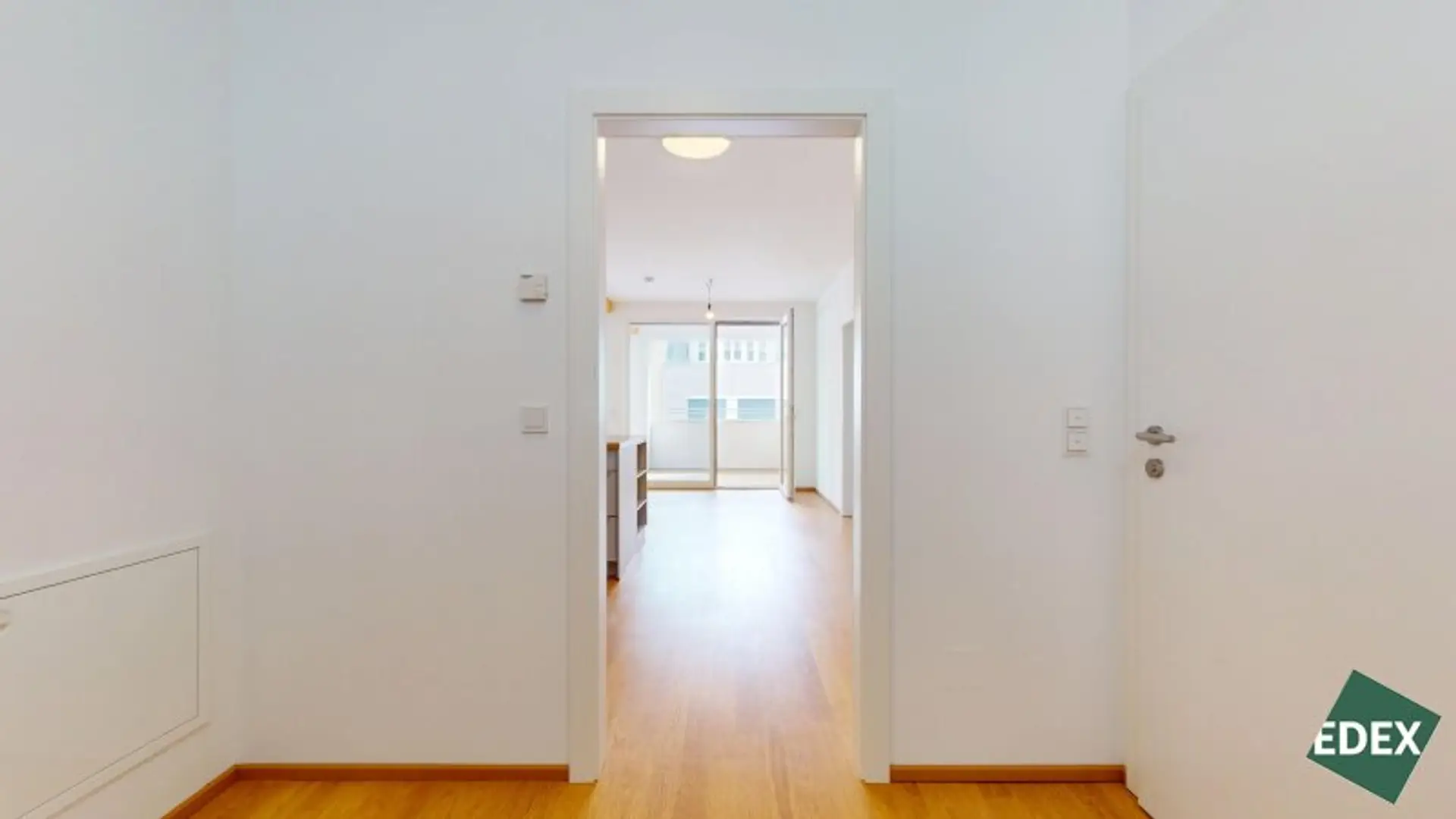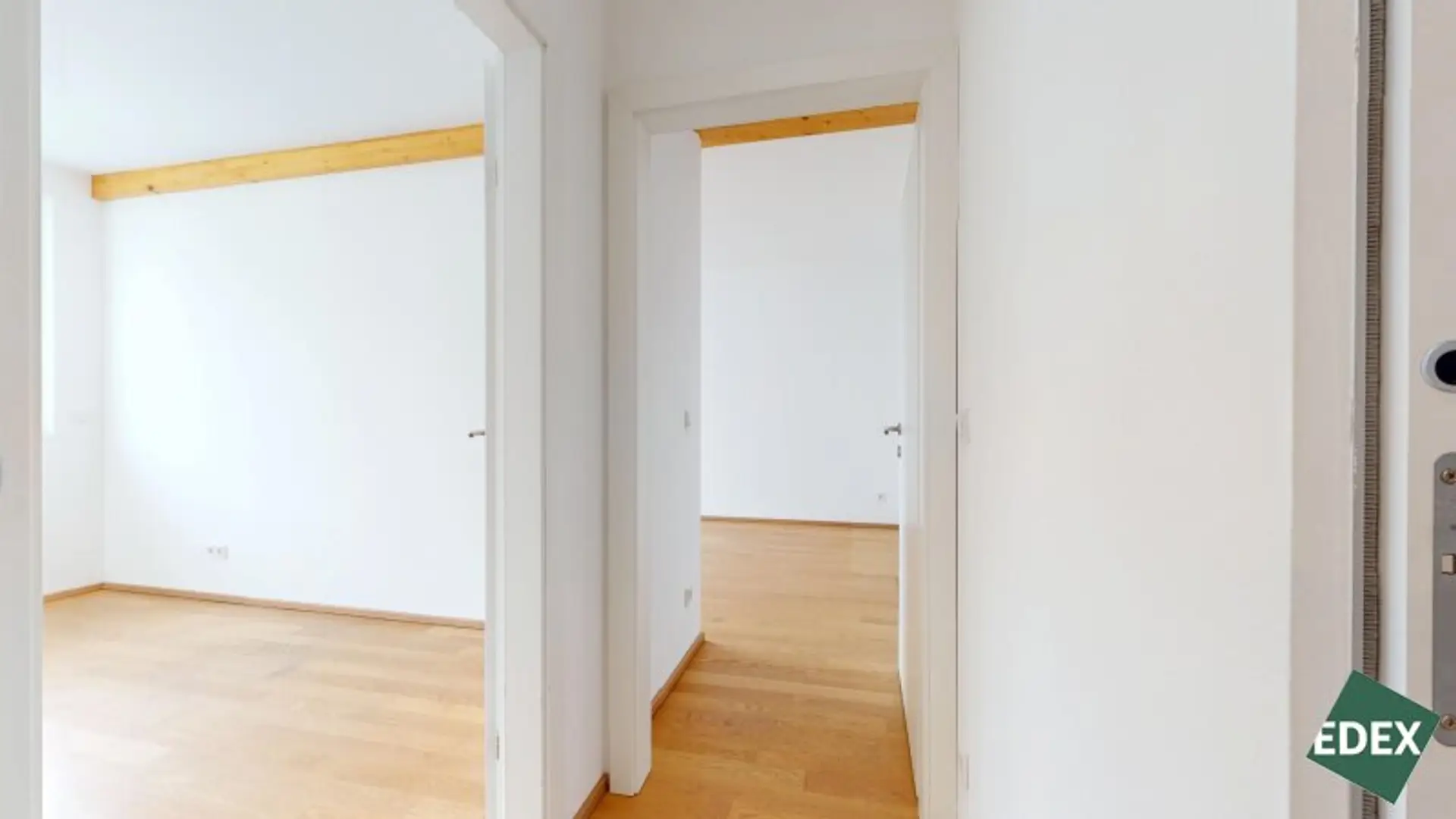 Besonderes Highlight ist der effiziente Grundriss mit einem hellen Wohn-/Essbereich, welcher direkt mit der südöstlich gelegenen Loggia (11 m²) verbunden ist. Die große Fensterfront der Wohnküche sorgt für viel natürliches Licht. Gegen die warmen Sommerwochen dient ein außenliegender Sonnenschutz. Die moderne Einbauküche ist mit Markengeräten vollausgestattet und im Kaufpreis inbegriffen. Eine Speisekammer/Abstellraum sorgt für zusätzlichen Stauraum. Die 2 Schlafzimmer haben eine gute Größe und sind über einen Gang zentral begehbar. Das Badezimmer ist mit modernen Fliesen versehen und verfügt über eine Badewanne, eine Doppelwaschbecken, ein WC, eine Dusche und einen Waschmaschinenanschluss. Zudem gibt es ein Gäste-WC.