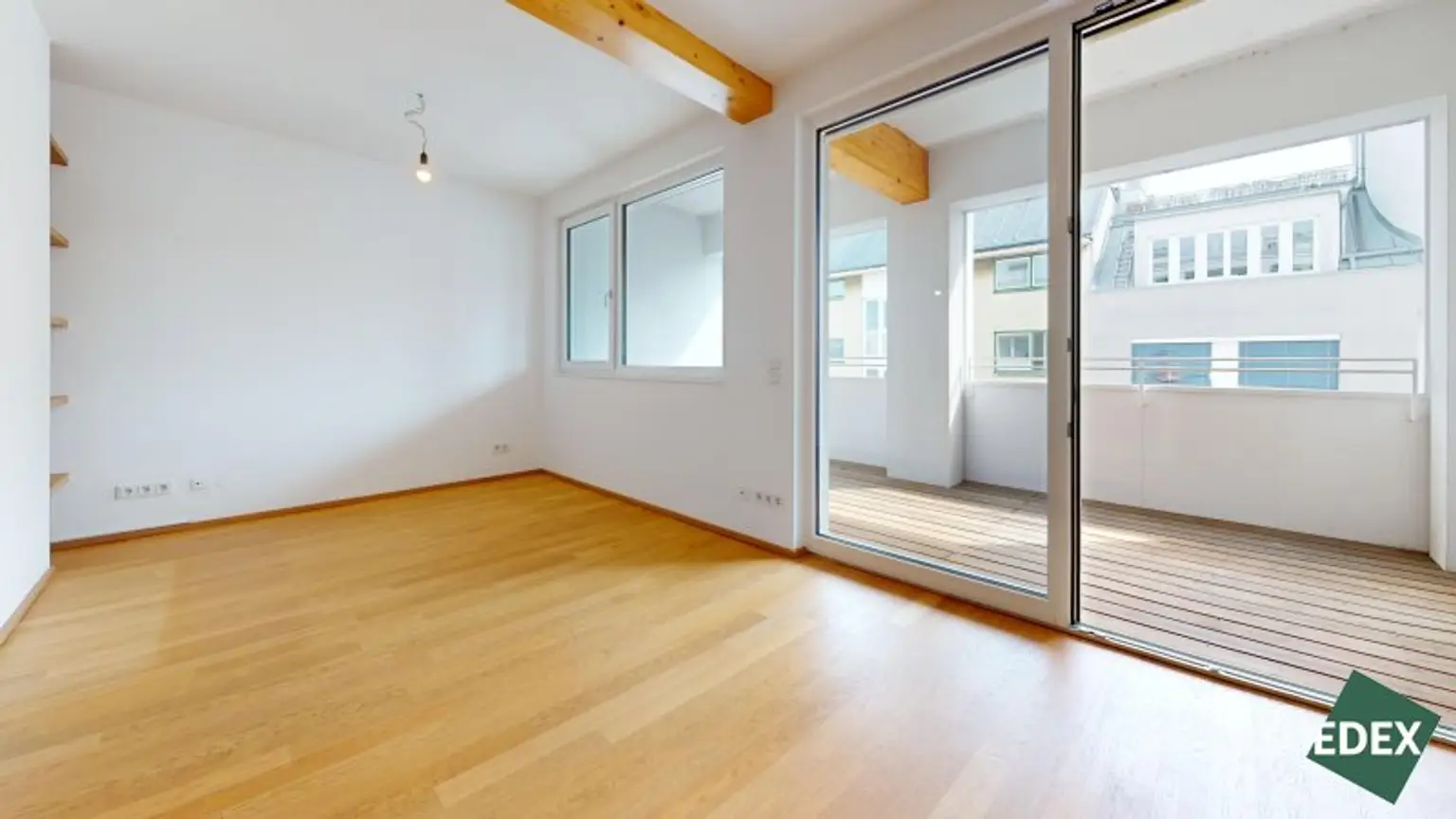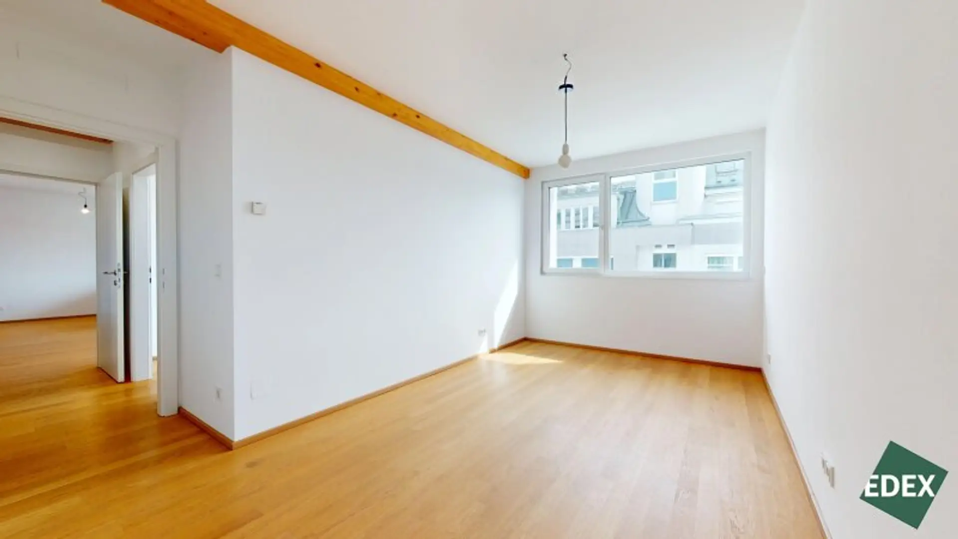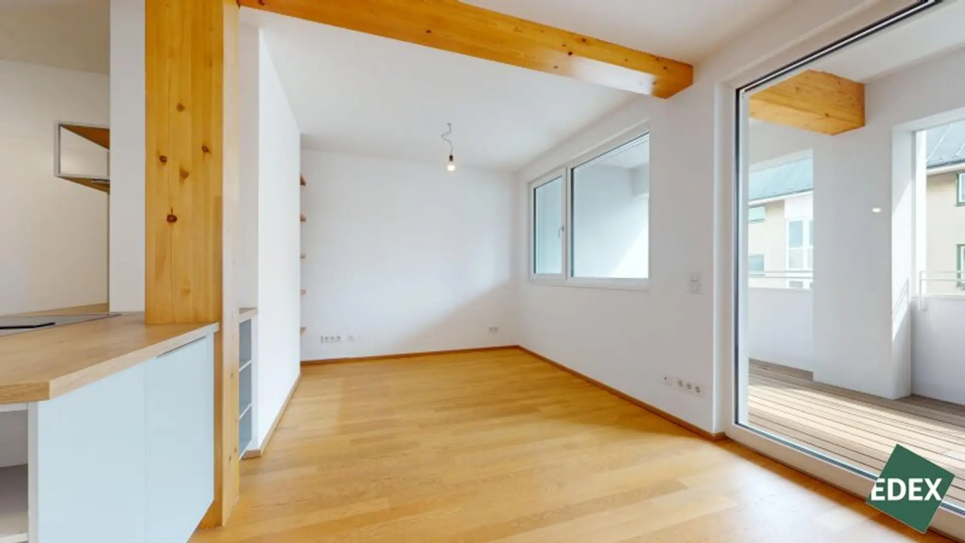 Die sichtbaren Holzdeckenbalken verleihen der Wohnung ein besonderes Flair. Die Wohnung ist sehr ruhig gelegen und aufgrund der Ausrichtung sehr hell.