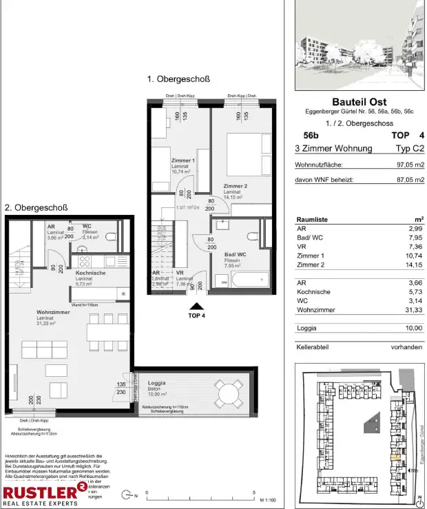 Diese ansprechend ca. 97,05 m² große, ansprechend geschnittene 3-Zimmer-Wohnung überzeugt durch eine klare Raumaufteilung, helle Wohnräume und eine größzügige Loggia. Die Wohnung erstreckt sich über zwei Ebenen und bietet eine ideale Kombination aus privatem Rückzugsbereich und offenem Wohnkomfort. 2.Obergeschoss-Wohnzimmer mit offener Kochnische -Abstellraum -WC -Loggia1.Obergeschoss-2 Zimmer -Bad/WC Vorraum Abstellraum Diese Wohnung wird ohne Kücheneinrichtung vermietet.Die Bruttomiete setzt sich zusammen aus: Hauptmietzins, Betriebskosten und Umsatzsteuer. Heizkosten und Energiekosten sind nicht enthalten. Lage und Infrastruktur: In unmittelbarer Nähe befinden sich zahlreiche Einkaufsmöglichkeiten wie Spar, Interspar und das Einkaufszentrum Citypark. Die Anbindung an öffentlichen Verkehr ist durch die Nähe zum Grazer Hauptbahnhof hervorragend. Für die Freizeitgestaltung stehen Parks wie der Josef-Huber- oder Oeverseepark sowie Restaurants, Cafés und kulturelle Einrichtungen in der Umgebung zur Verfügung. Mietbeginn: ab sofort Mietdauer: unbefristet Jetzt online anfragen oder anrufen – wir melden uns zeitnah mit Terminvorschlägen. Weitere Immobilien finden Sie auf unserer a href="https://rustler.eu/"Homepagea_