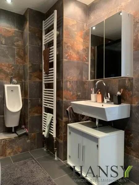 * Waschbecken, Pissoir, WC sowie Waschmaschinenanschluss inklusive Waschmaschine im Badezimmer