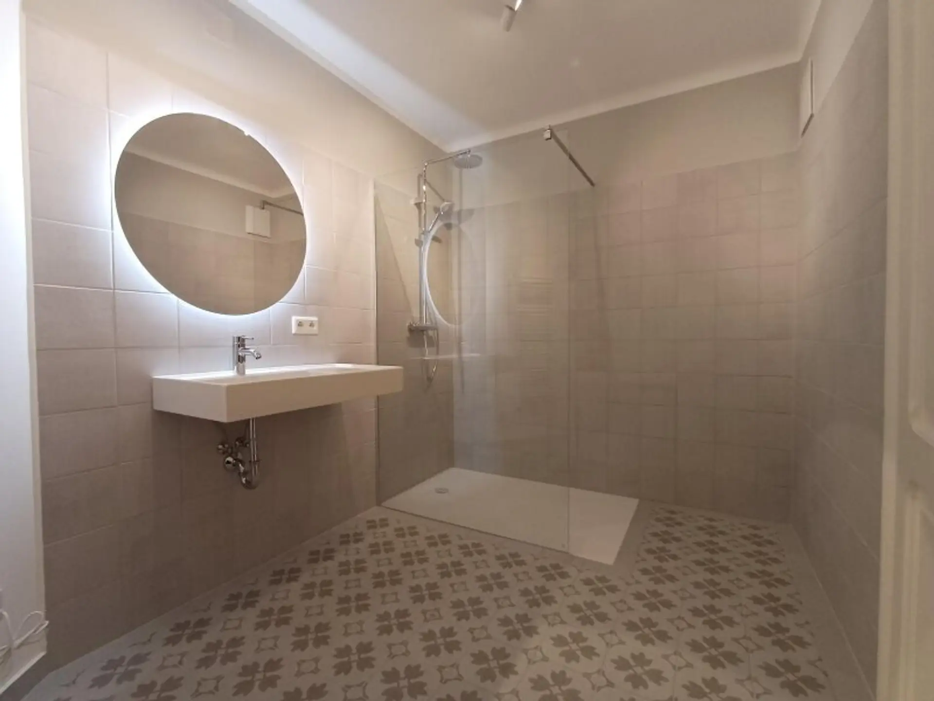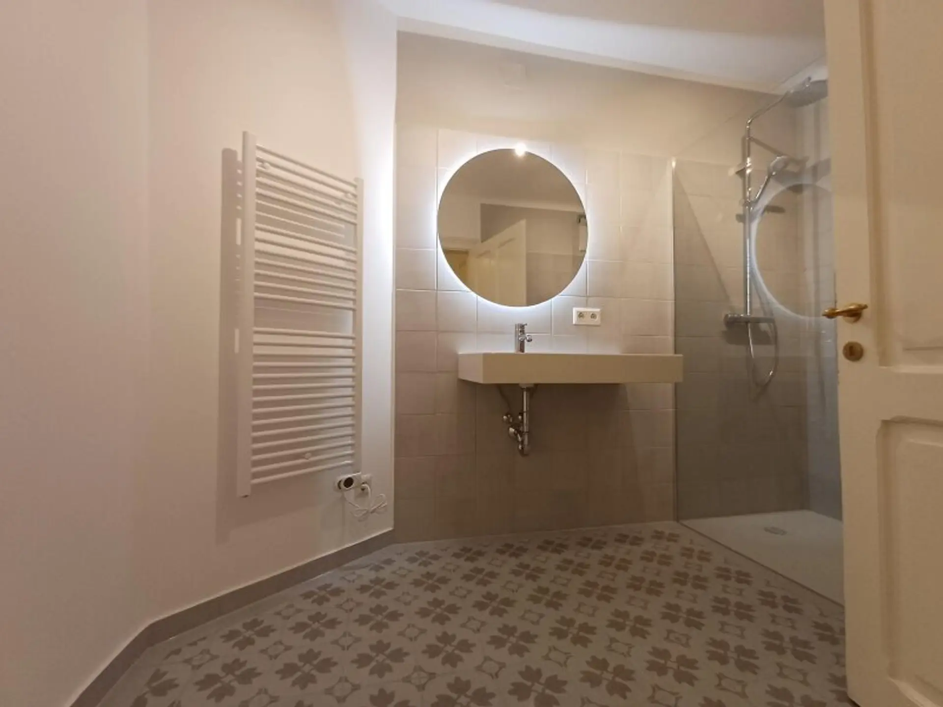 Badezimmer mit Dusche und elektrischer Fußbodenheizung