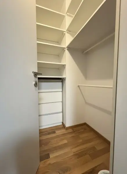 Der zentrale Wohnbereich überzeugt durch seine angenehme Atmosphäre sowie den Zugang zu insgesamt drei Loggien, die sowohl nach Norden als auch nach Süden ausgerichtet sind. Diese bieten zusätzlichen Freiraum, viel Tageslicht und einen angenehmen Blick ins Grüne – perfekt für entspannte Stunden im Freien.