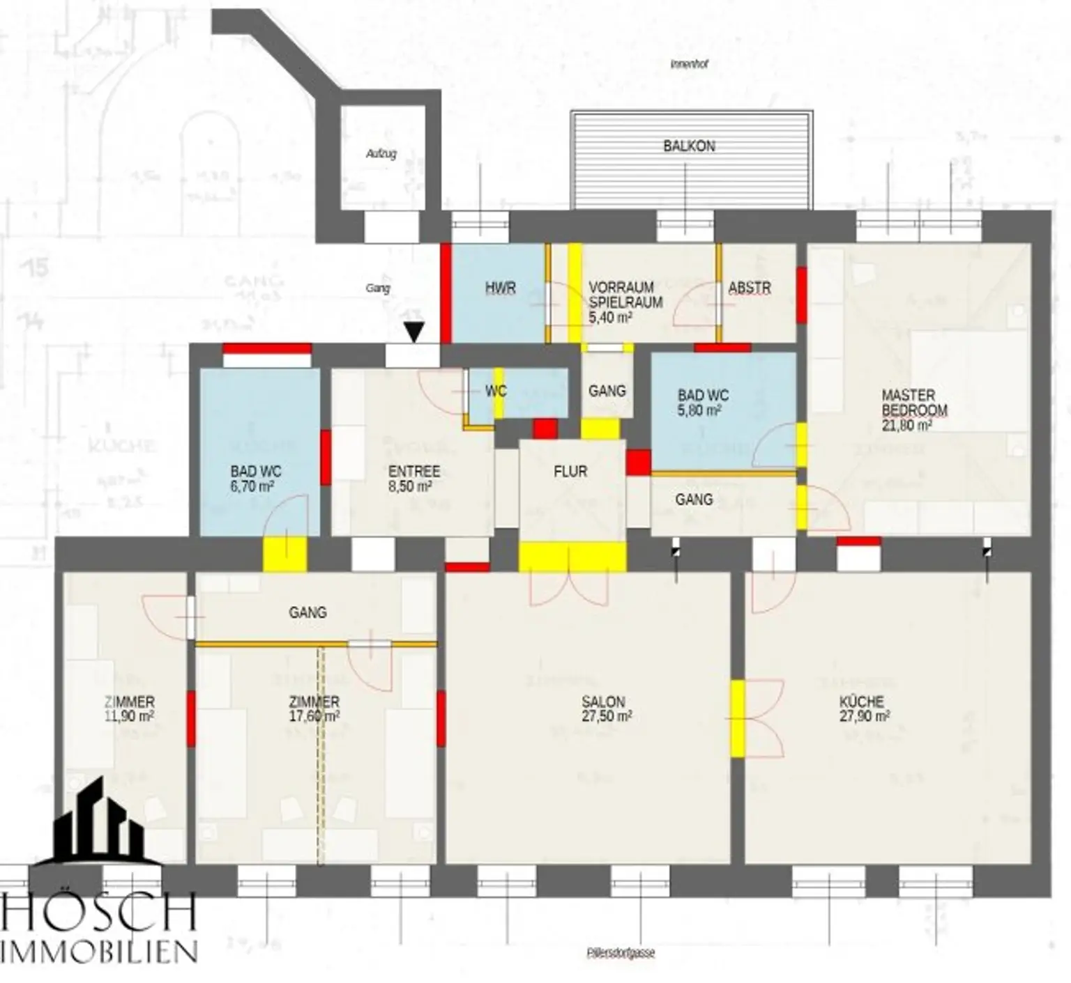 Der Grundriss bietet zahlreiche Möglichkeiten – ob als elegante Familienwohnung, großzügiges Stadtrefugium oder repräsentativer Wohnsitz. Ein neu geschaffener Balkon mit ca. 8 m² erweitert den Wohnraum um einen wertvollen Freiluftbereich.