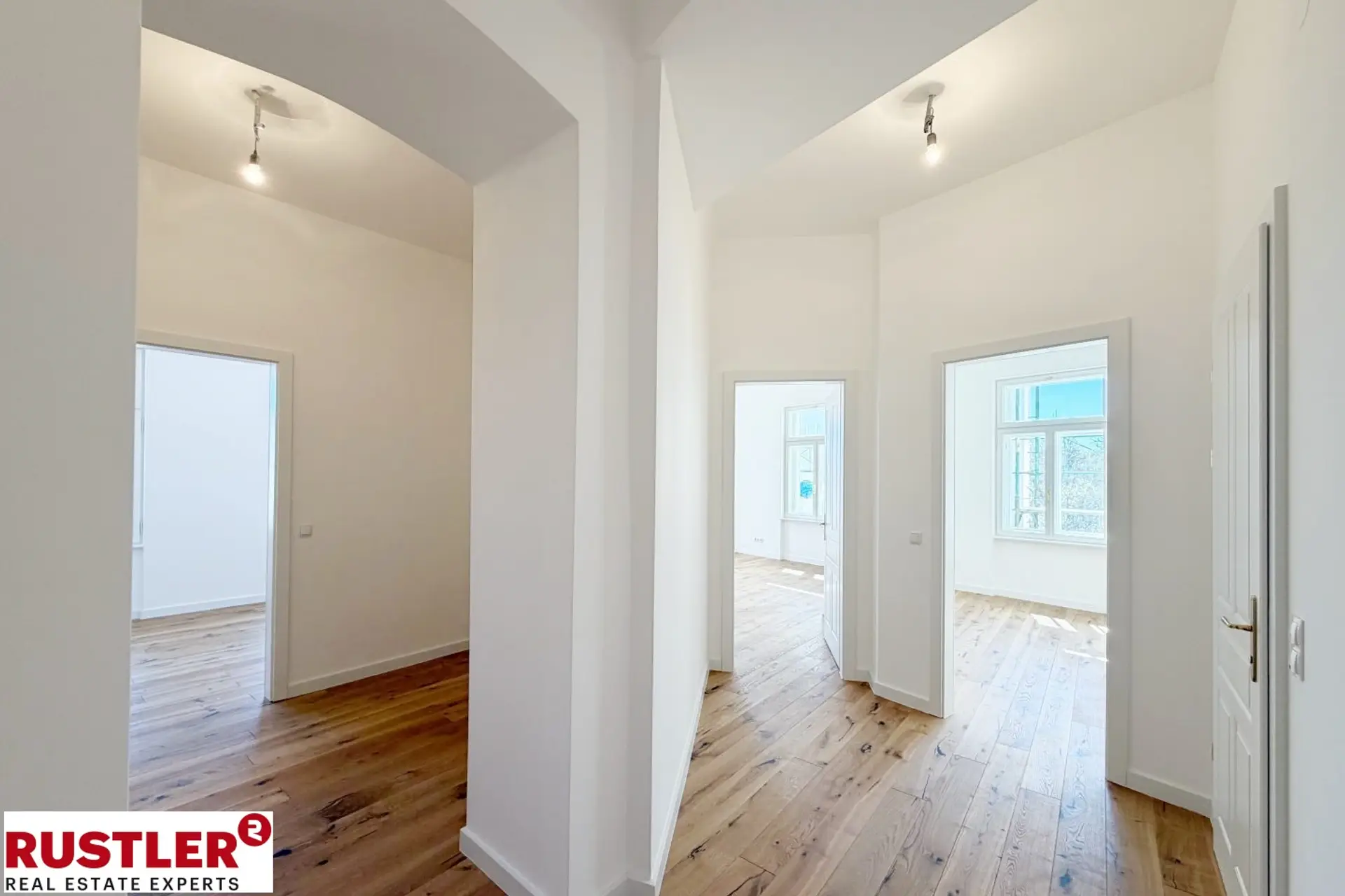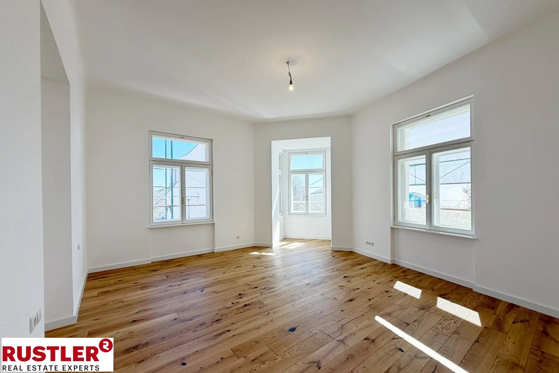 In einer der begehrtesten Lagen in Mödling entsteht ein einzigartiges Wohnensemble in einem denkmalgeschützten Gebäude aus dem Jahre 1895. Das imposante neobarocke Eckhaus, das direkt am Beginn der beliebten Fußgängerzone in Mödling liegt, wird umfassend saniert und revitalisiert – die historische Fassade aufwendig instandgesetzt und die hohen, originalgetreu nachgebauten Holzfenster verleihen dem Haus seinen unverwechselbaren Charme. Die Modernisierung erfolgt mit höchstem Anspruch: Alle 12 Wohnungen werden mit ausgewählten, hochwertigen Materialien sowie modernster Technik ausgestattet, um zeitgemäßen Wohnkomfort zu garantieren. Von den großzügigen 2 bis 4-Zimmer-Wohnungen mit Größen zwischen ca. 49 m² und ca. 140 m², sind noch 9 Einheiten verfügbar. Viele der Wohnungen verfügen über attraktive Außenflächen. Der teilweise begrünte Innenhof bietet eine ruhige Oase im Herzen der Stadt und wird mit fünf Stellplätzen ergänzt. Genießen Sie den imposanten Ausblick auf die nahegelegene St. Othmar Kirche – ein Blick, der zum Wohlfühlen einlädt. Mit einer nord-ost-süd-seitigen Ausrichtung öffnet sich hinter einer klassischen Altbaufassade eine Wohnung, die in ihrer Wirkung und Großzügigkeit kaum zu übertreffen ist. Auf rund 140 m² Wohnfläche bietet diese 4-Zimmer-Wohnung ein stilvolles Wohnambiente, das Raum, Wohngefühl und architektonische Besonderheiten auf eindrucksvolle Weise vereint. Das Herzstück der Wohnung ist der großzügige Wohn- und Essbereich mit direktem Zugang zum Balkon – und einem Blick, der seinesgleichen sucht: Die Silhouette der St. Othmar-Kirche bildet den malerischen Hintergrund eines jeden Tages. Ein Ausblick, der Emotionen weckt und die Wohnung zu etwas ganz Besonderem macht. Raumaufteilung: - großzügiger Wohn- und Essbereich mit Balkonzugang - zwei separate WCs - stilvoll ausgestattetes Badezimmer mit Badewanne, Dusche und Waschbecken - Abstellraum mit Waschmaschinenanschluss - 3 Schlafzimmer – eines davon mit charmantem Erker, der dem Raum eine einzigartige Note verleiht - durchdachte Flure und Übergänge, die sich perfekt für maßgefertigte Schranklösungen und Stauraum nutzen lassen Diese Wohnung besticht nicht nur durch ihre Fläche, sondern auch durch die besondere Atmosphäre: Hohe Decken, großzügige Raumwirkung, klassische Altbaudetails, edle Armaturen im viktorianischen Stil und eine Lage unmittelbar bei der Fußgängerzone. Informieren Sie sich gerne über weitere Wohnungen unter