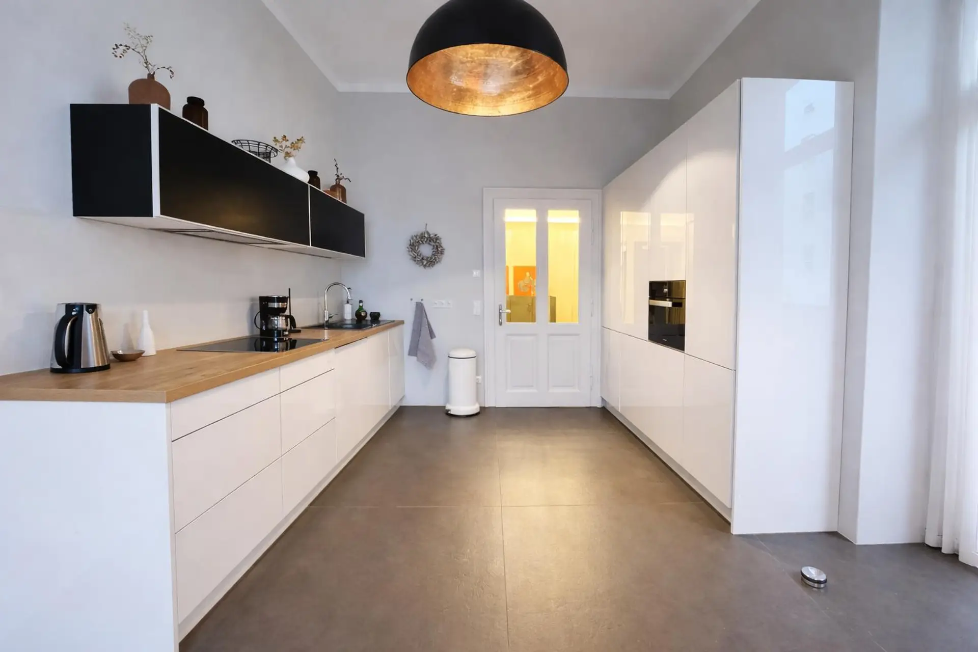 Diese Wohnung überzeugt nicht durch einen klassischen Grundriss, sondern durch Großzügigkeit, Licht und architektonische Qualität. Bereits beim Betreten wird das besondere Raumgefühl spürbar. Nahezu vier Meter hohe Decken, lichtdurchflutete Räume und elegante Altbaudetails prägen den Charakter dieses Zuhauses.