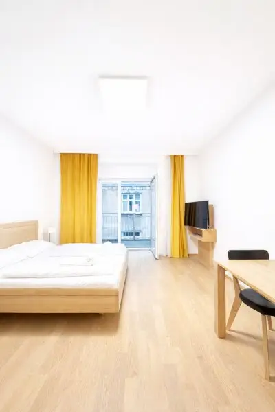 Die Einheit verfügt über einen gut geschnittenen Wohn- und Schlafbereich, der vielfältige Gestaltungsmöglichkeiten bietet und sowohl für Eigennutzer als auch für Anleger eine ideale Grundlage darstellt. Große Fensterflächen sorgen für eine angenehme Belichtung und schaffen eine helle, freundliche Wohnatmosphäre.
