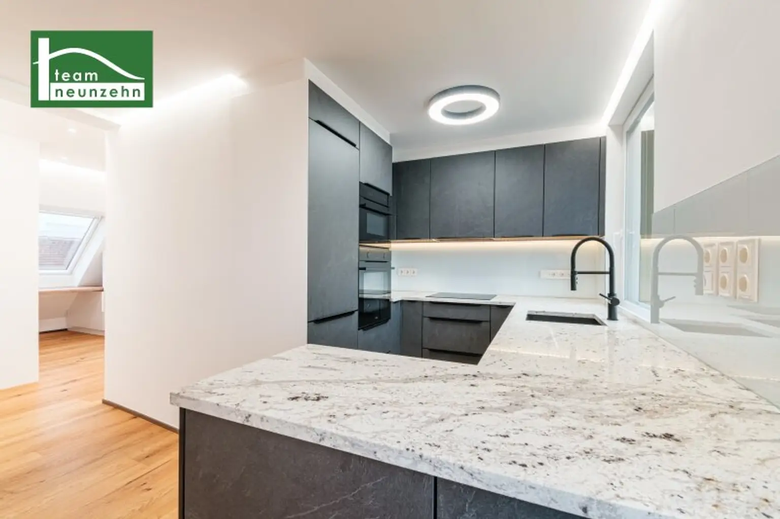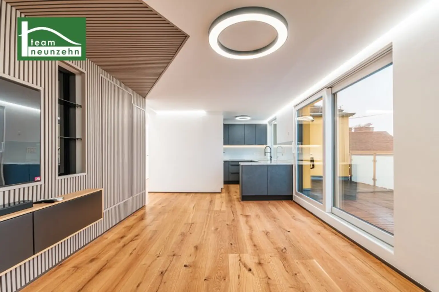 Diese außergewöhnlich hochwertig sanierte 2-Zimmer-Dachgeschosswohnung befindet sich im 5. Liftstock eines gepflegten Wohnhauses und überzeugt durch eine edle Materialwahl, eine durchdachte Raumaufteilung sowie modernsten Wohnkomfort. Auf ca. 76 m² Wohnfläche plus einer ca. 18 m² südlich ausgerichteten Terrasse genießen Sie stilvolles Wohnen mit viel Licht, Ruhe und Privatsphäre.