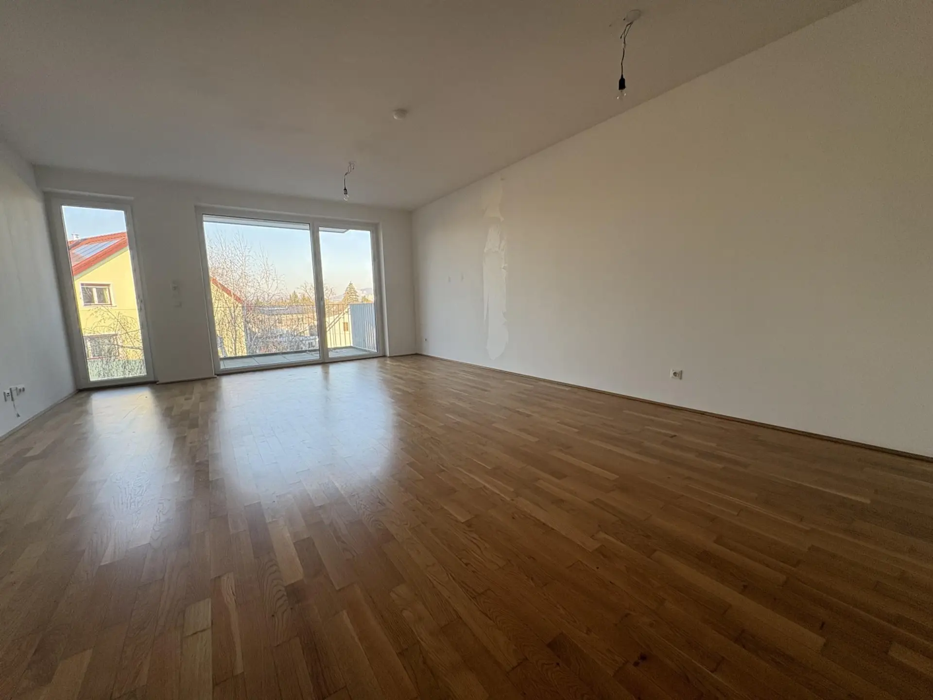 Der großzügige Wohn- und Essbereich ist lichtdurchflutet und bietet direkten Zugang zum Balkon, der zu entspannten Stunden im Freien einlädt. Die Küche ist funktional und modern gestaltet und fügt sich harmonisch in das Gesamtbild der Wohnung ein.