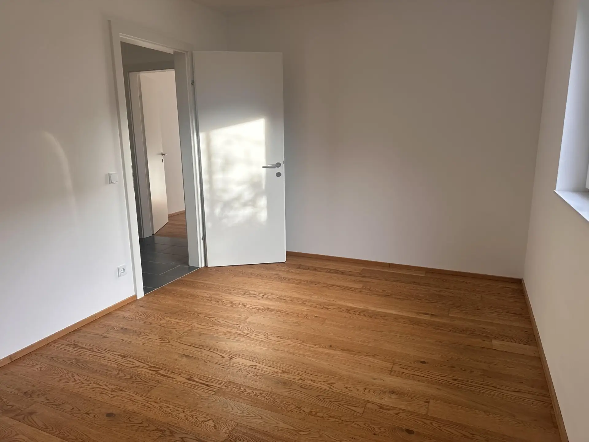 Zwei Schlafzimmer bieten vielseitige Nutzungsmöglichkeiten. Das große Badezimmer ist mit Dusche und WC ausgestattet, zusätzlich steht ein separates WC zur Verfügung. Ein großzügiger Abstellraum sorgt für zusätzlichen Stauraum.