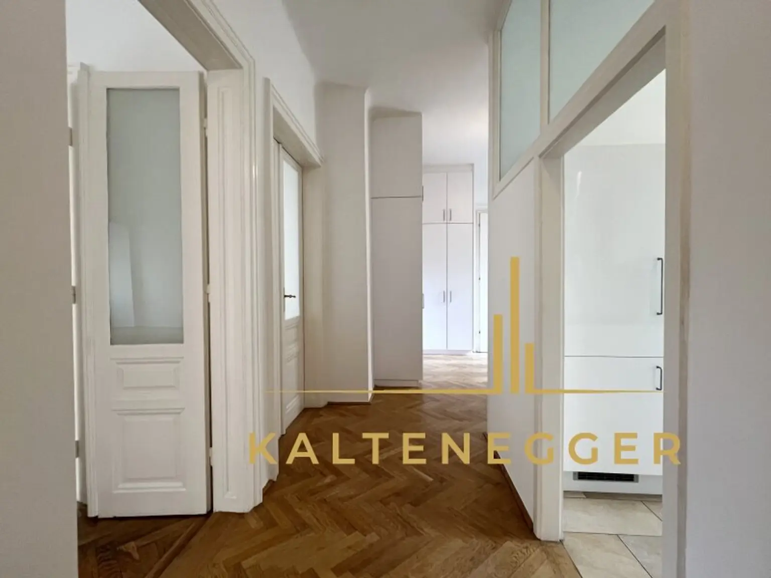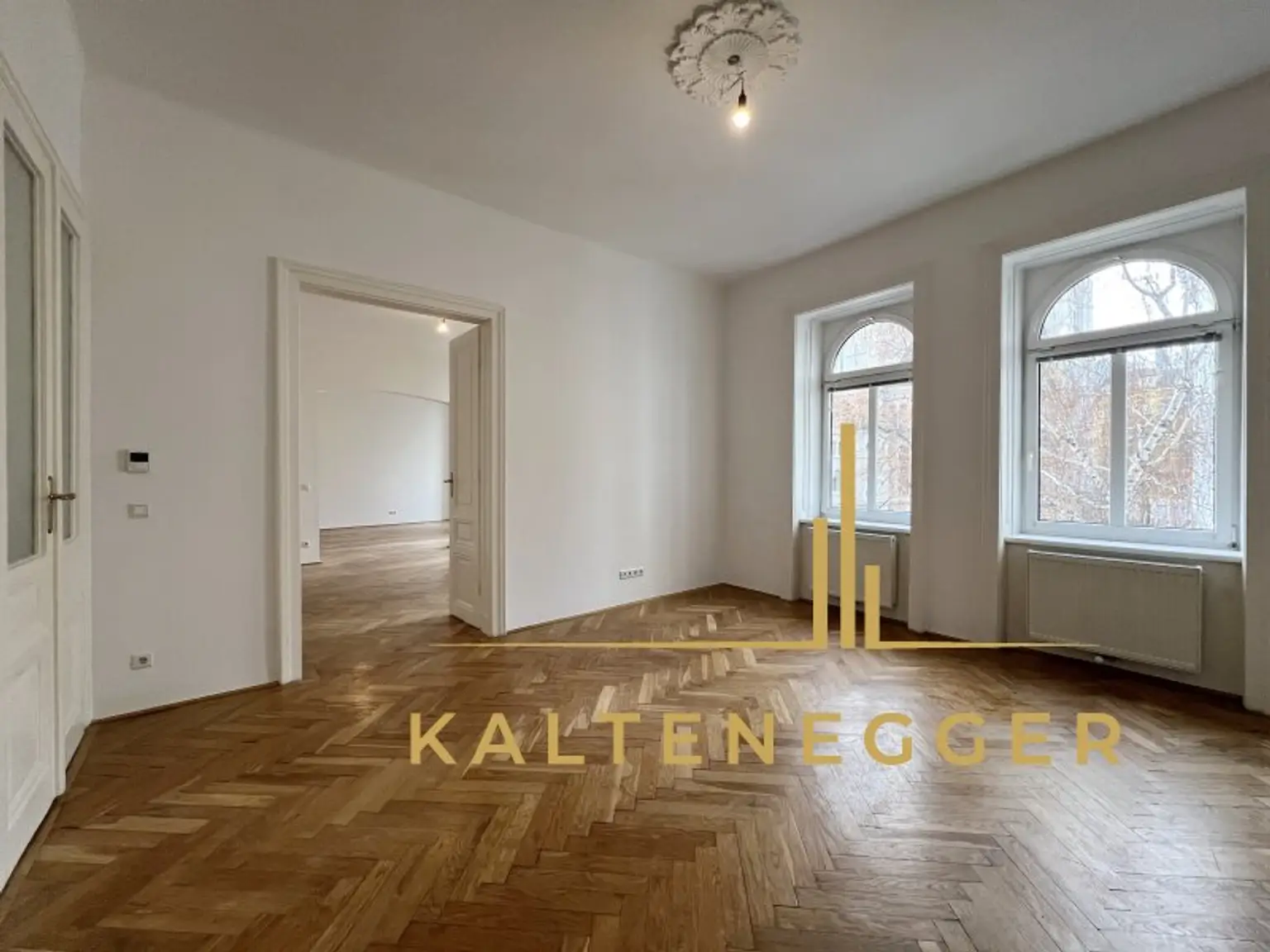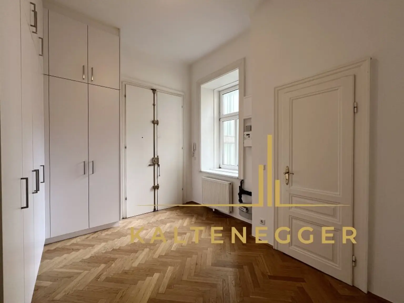 Stilvolle Altbauelemente wie hohe Räume, Flügeltüren und klassische Parkettböden verleihen dem Objekt den typischen Wiener Altbaucharakter.