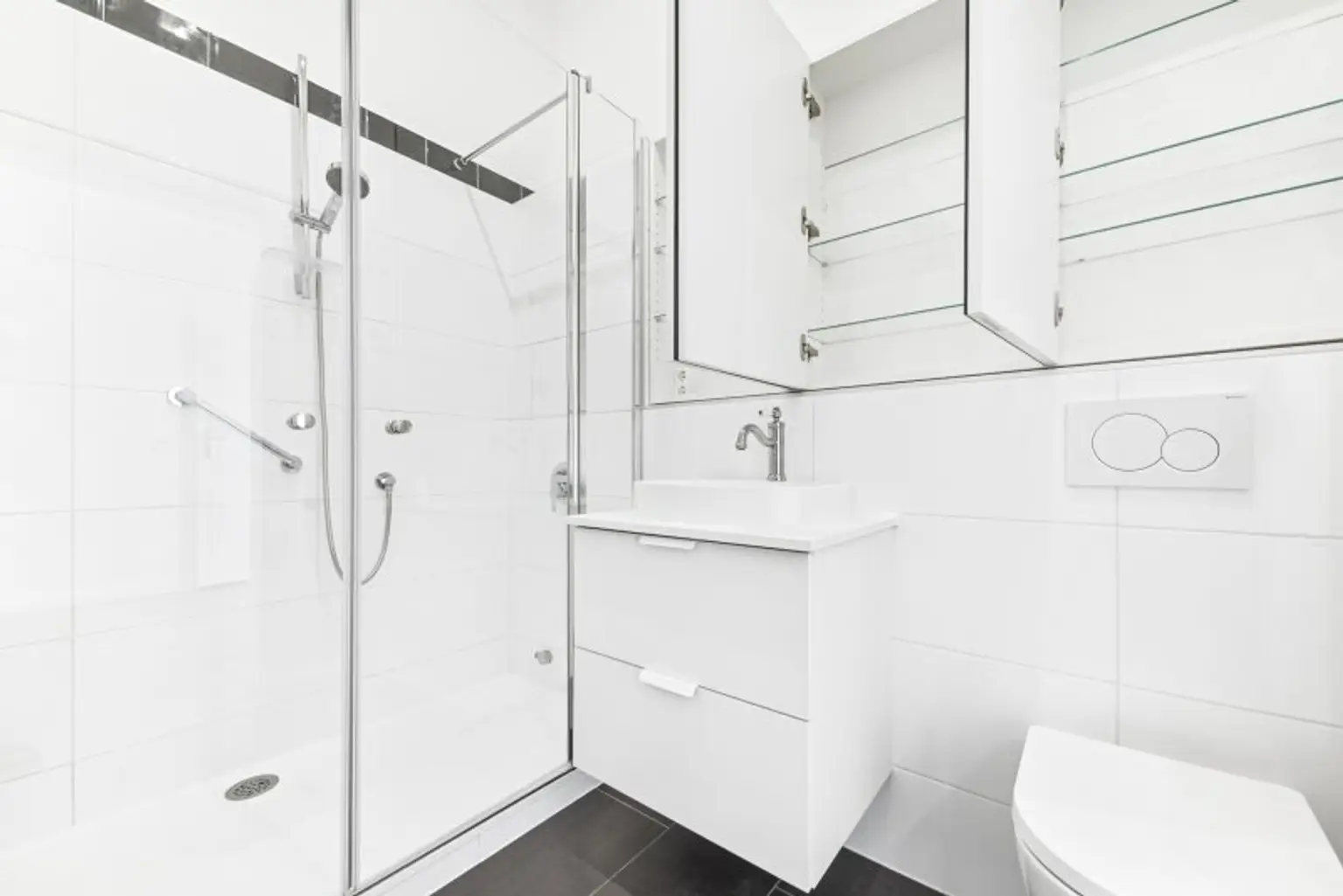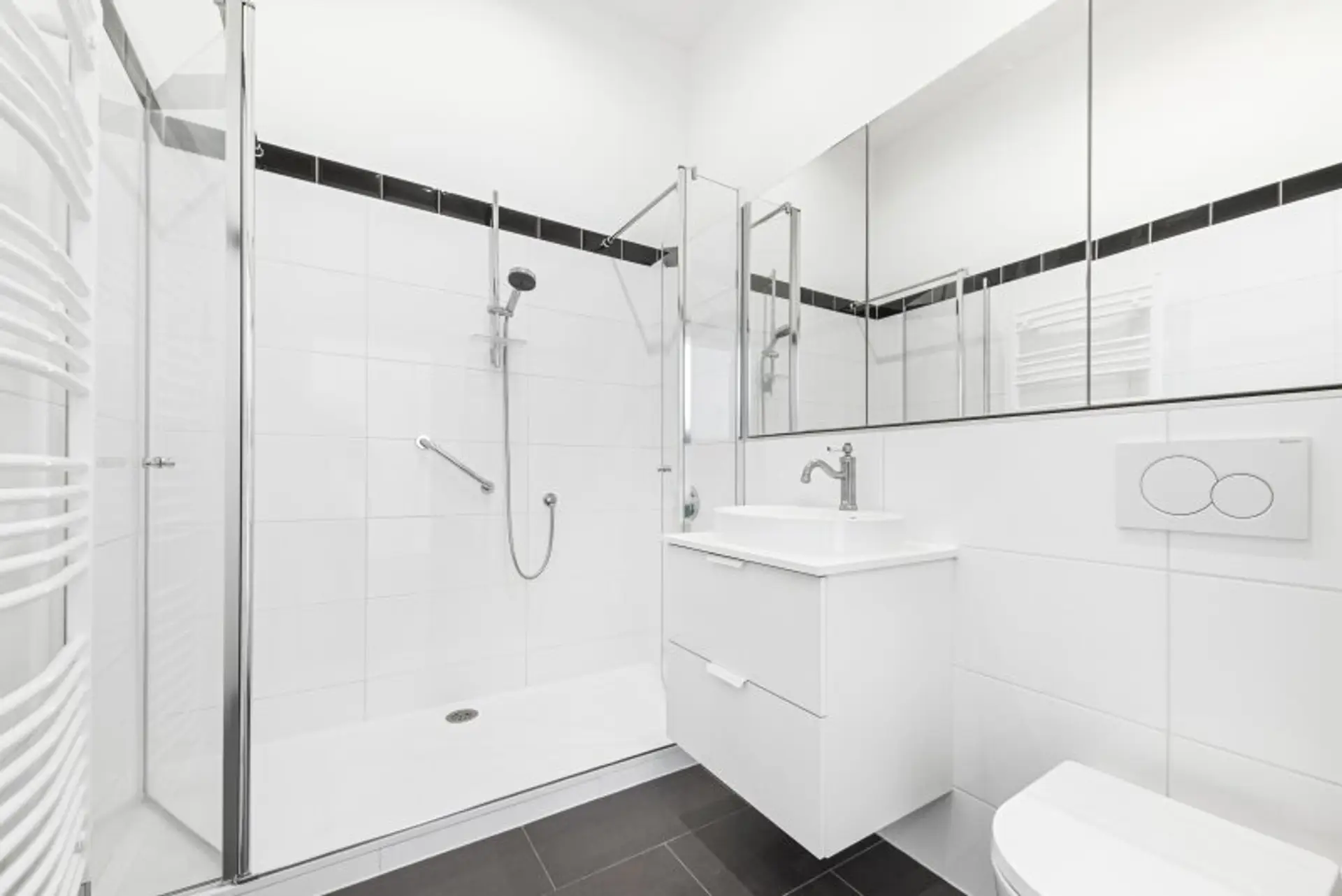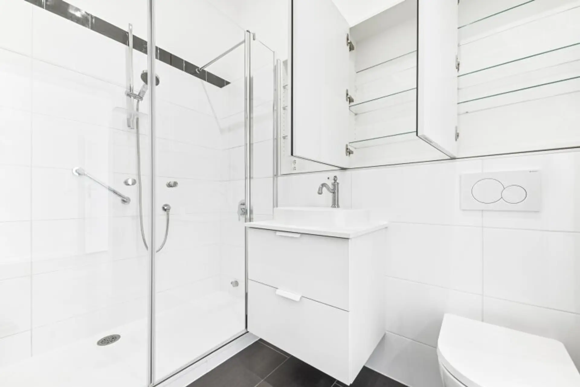 Die modern ausgestattete Einbauküche, ein elegantes Badezimmer mit Dusche sowie zwei separate WCs sorgen für Komfort im Alltag. Ein Abstellraum und ein Kellerabteil bieten zusätzlichen Stauraum.