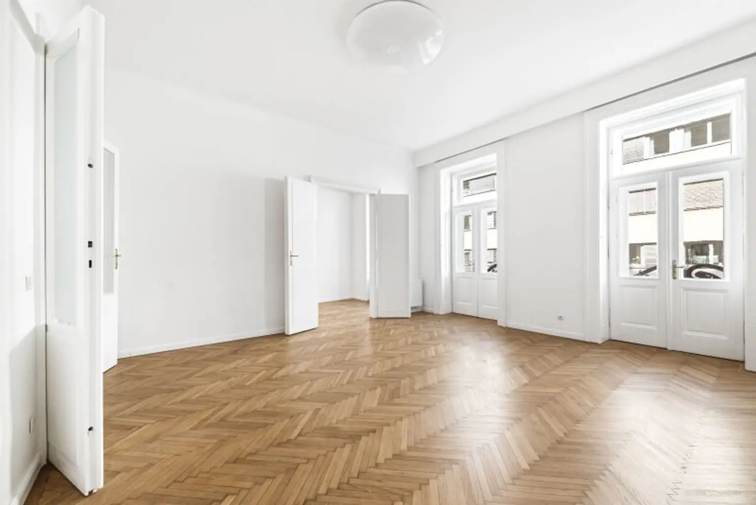 Auf rund 125 m² Wohnfläche entfaltet sich ein durchdachtes Raumkonzept mit großzügigen, lichtdurchfluteten Zimmern, die durch wunderschöne Fischgrätparkettböden, stilvolle Flügeltüren und hohe Decken ein unvergleichliches Wohngefühl schaffen.