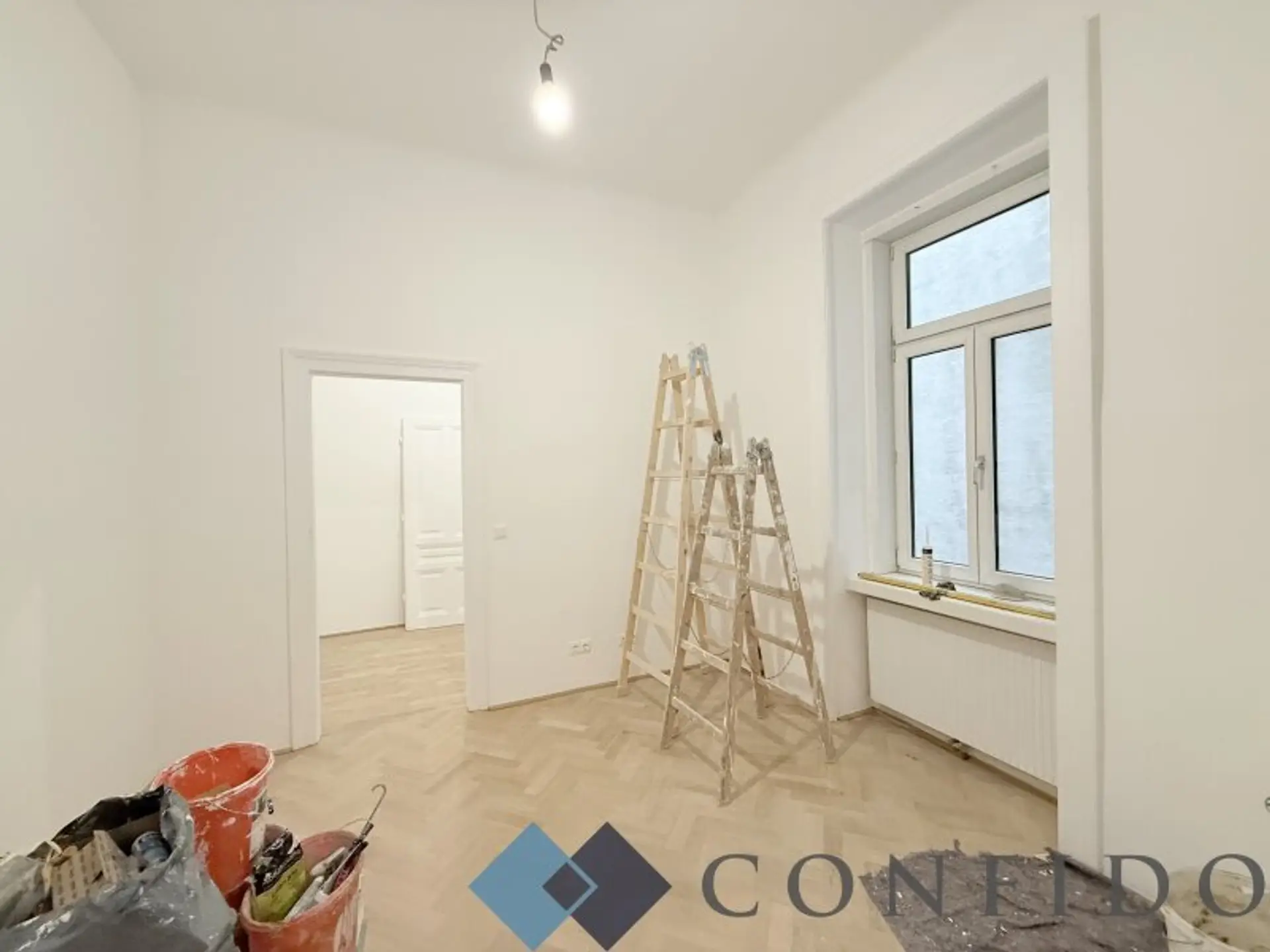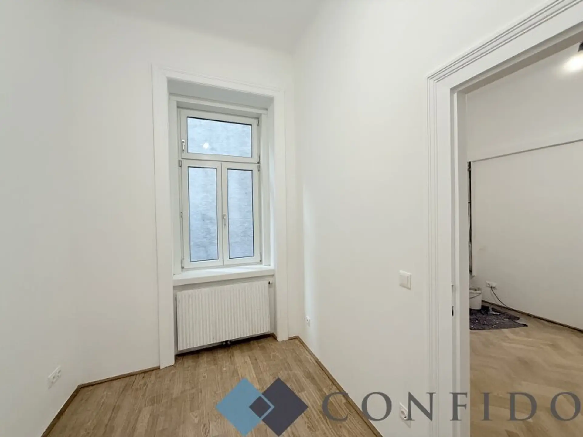 Zur befristeten Vermietung gelangt diese hervorragend geschnittene, rund 122 m² große Bürofläche im 7. Bezirk. Sie befindet sich im 1. Stock und wird derzeit umfassend saniert. Vom Vorraum aus sind drei großzügige Haupträume zu betreten: Ein ca. 18 m² großes Zimmer mit Blick in den ruhigen Lichthof sowie zwei weitere große Räume, die Richtung Kaiserstraße ausgerichtet sind. Im vorderen Bereich wurde zudem eine praktische Nische geschaffen, die sich ideal als Wartebereich oder großzügige Garderobe eignen würde.