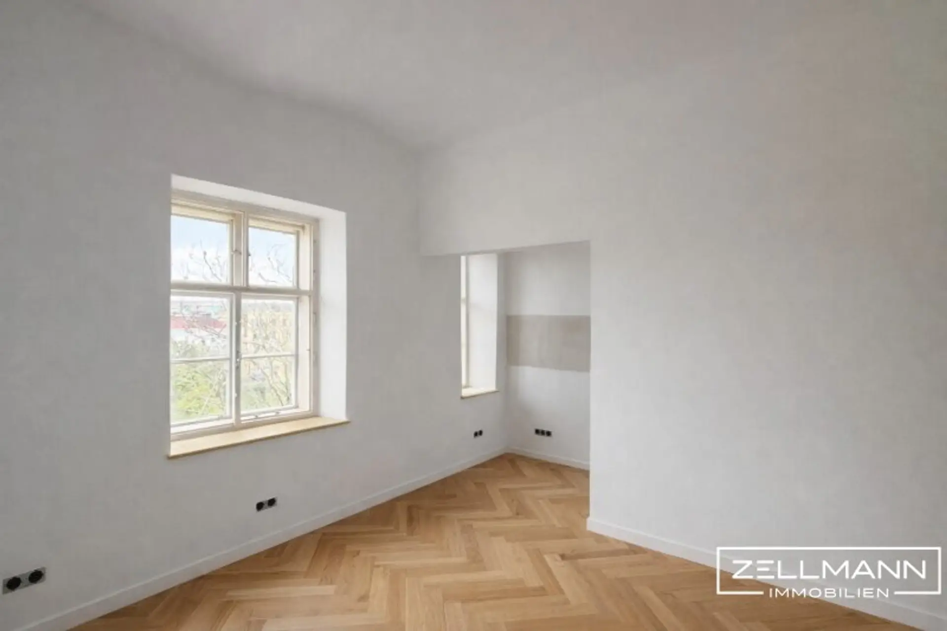 In einem außergewöhnlich gepflegten und architektonisch stilvollen Haus im Geist des Stefan-Zweig-Erbes gelangt dieses neu generalsanierte Atelier im Dachgeschoss zur Vermietung.