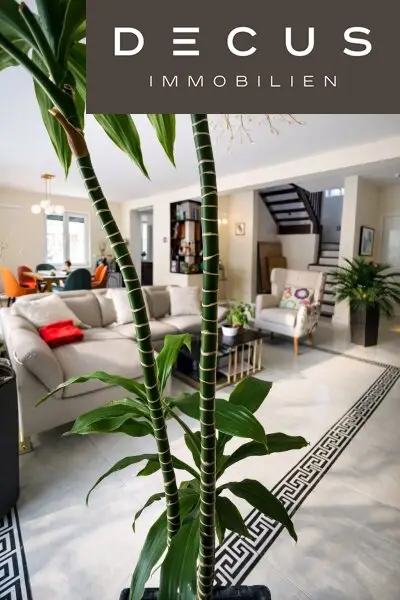 Der offen gestaltete Wohnbereich mit rund 38 m² bildet das Herzstück des Erdgeschosses. Bodentiefe Fenster öffnen den Raum zur Terrasse und in den Garten und schaffen ein außergewöhnlich helles, freundliches Ambiente.