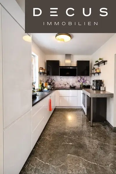 Die hochwertige Küche ist modern ausgestattet und harmonisch in den Wohnbereich integriert – perfekt für Familienleben ebenso wie für repräsentative Abende mit Gästen.
