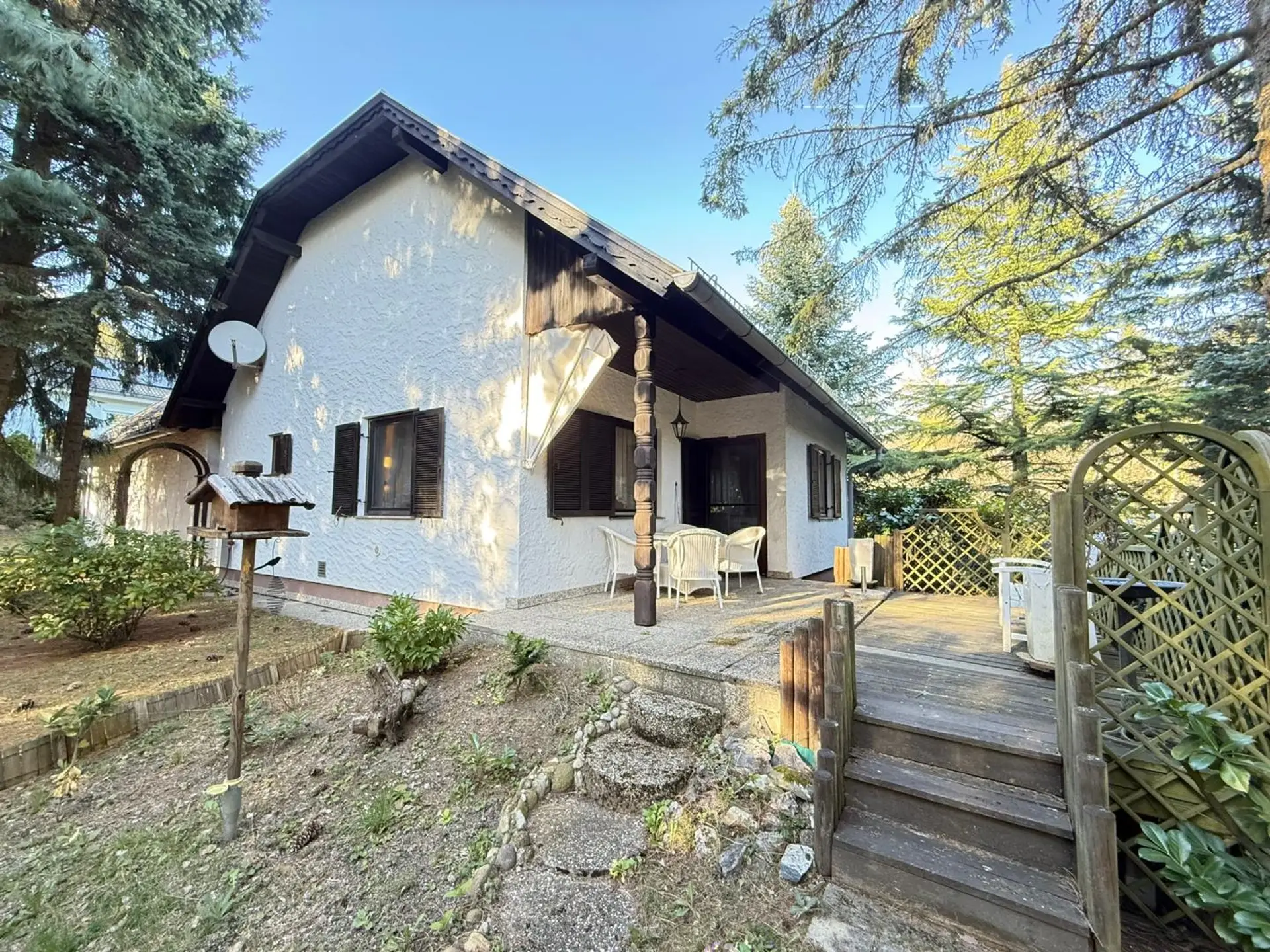 Ein besonderes Highlight ist die großzügige Terrasse mit direktem Blick in den angrenzenden Wald – hier genießen Sie entspannte Stunden in absoluter Privatsphäre.