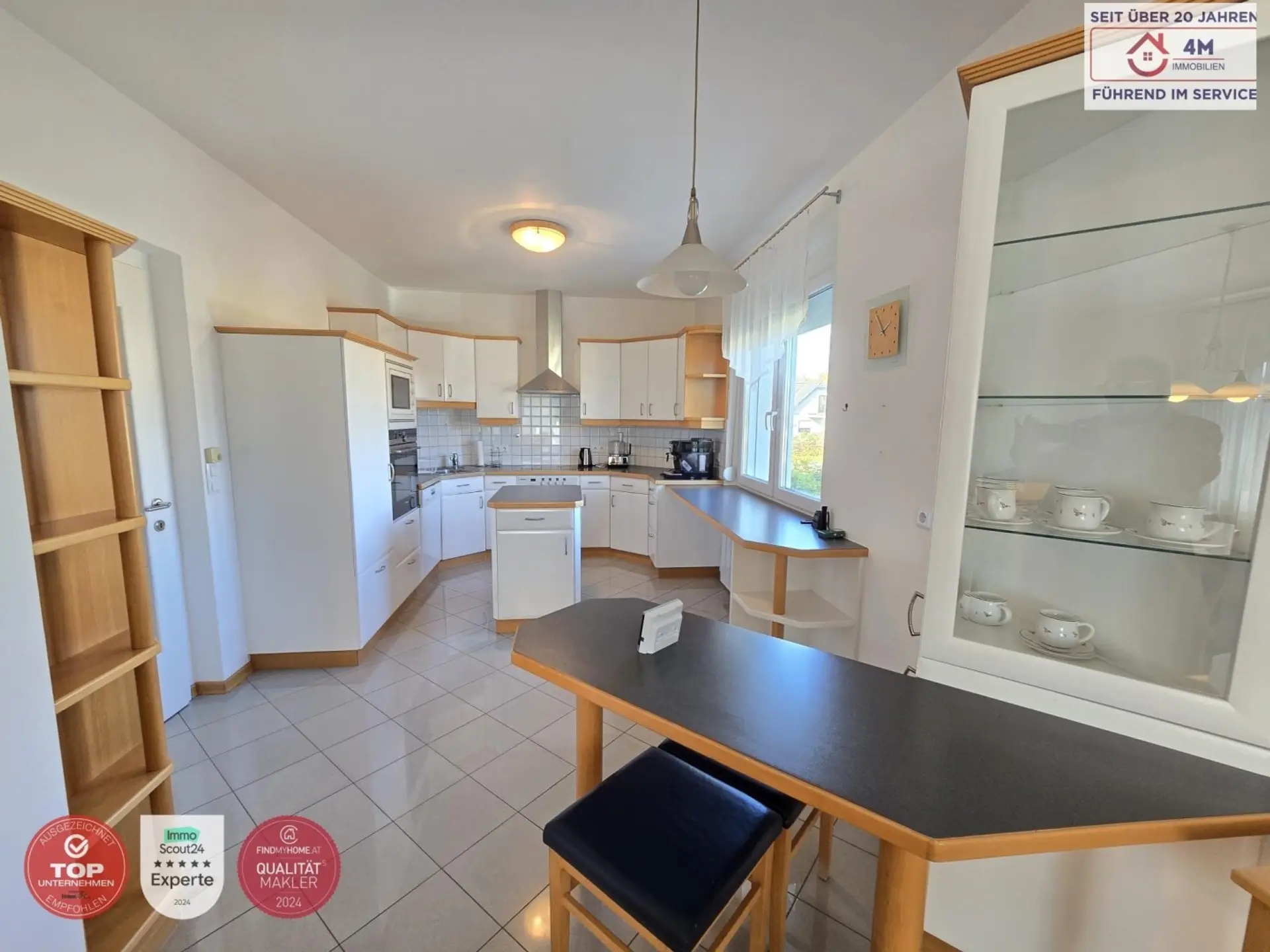 Die Küche, die mit Miele und Siemens Geräten ausgestattet ist, verbindet Funktionalität mit stilvollem Design und harmoniert perfekt mit dem maßgefertigten Holzmobiliar des Hauses. Wohnräume haben Parkettboden und sind gut belichtet. Die Fassade hat Vollwärmeschutz und die Kunststoff-Fenster mit Rolläden sind 3-fach isolierverglast. Im Wohnzimmerbereich im zweiten Obergeschoss befindet sich ein Schwedenofen.