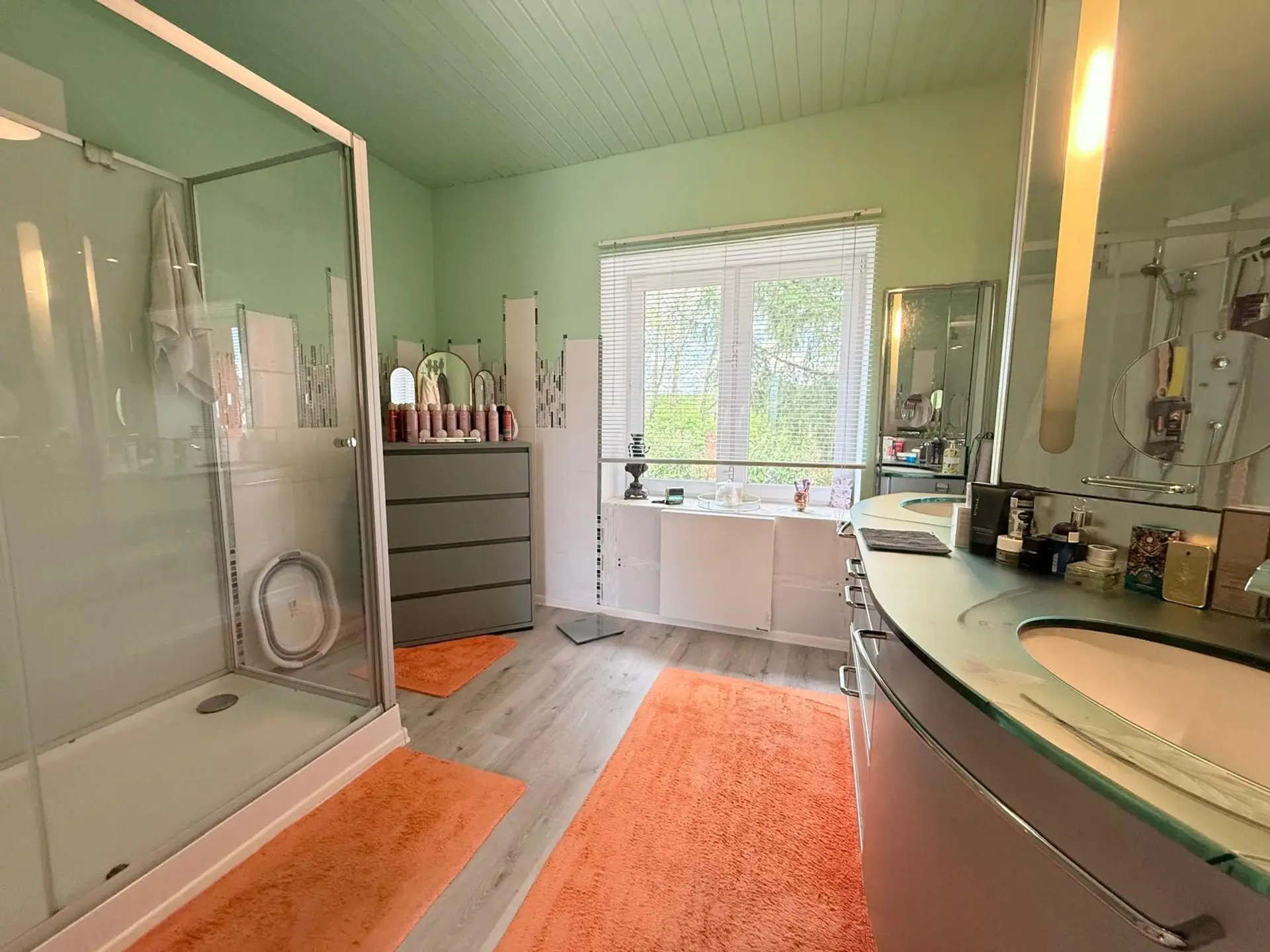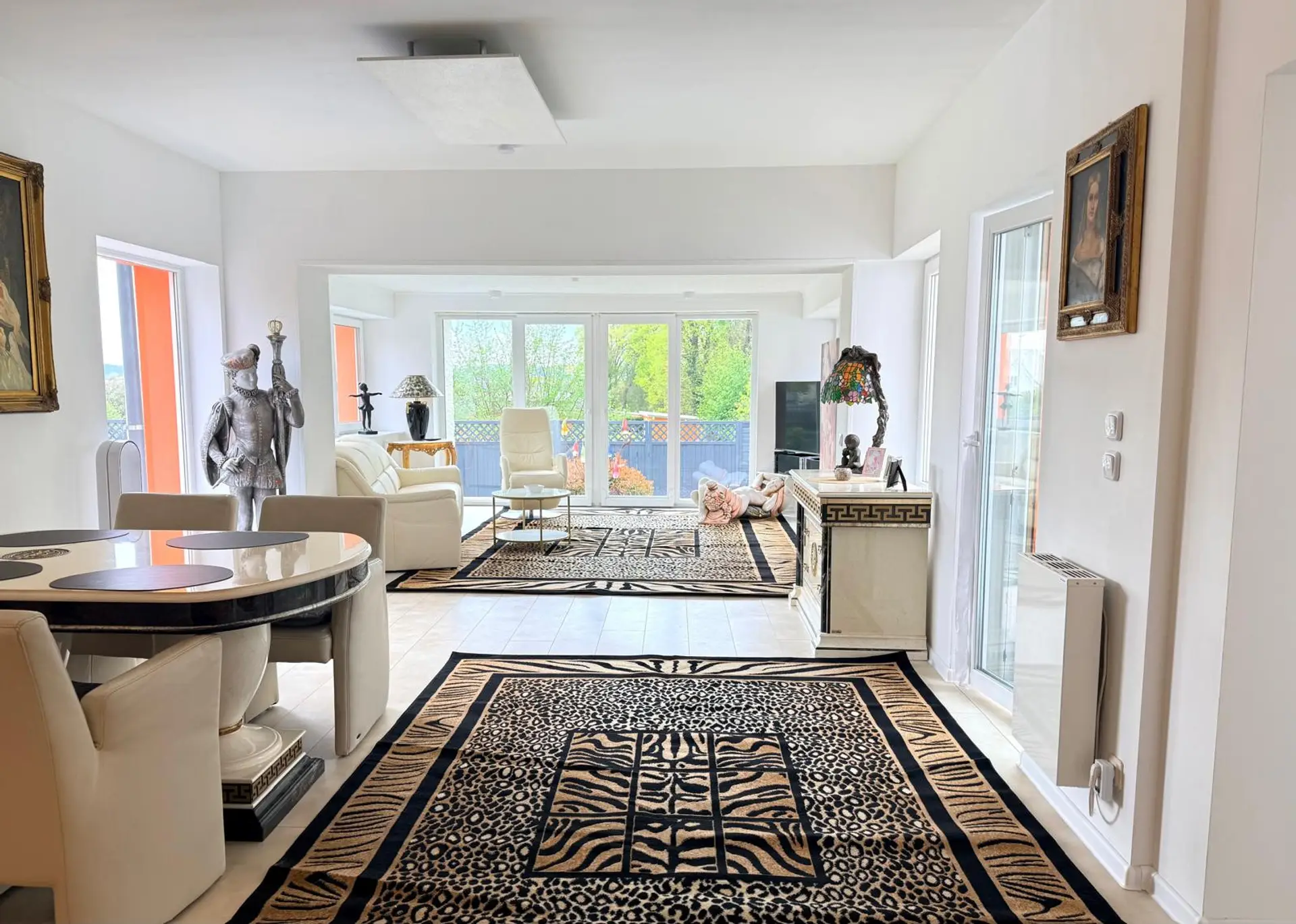 Das Einfamilienhaus in Großpetersdorf stammt aus den 1950er Jahren, wurde 2022 saniert & umgebaut sowie mit einem einzigartigen, individuellen Stil neu gestaltet. Die Wohnfläche beträgt etwa 145 m² und erstreckt sich über Erdgeschoss, Mittelgeschoss und Dachgeschoss.