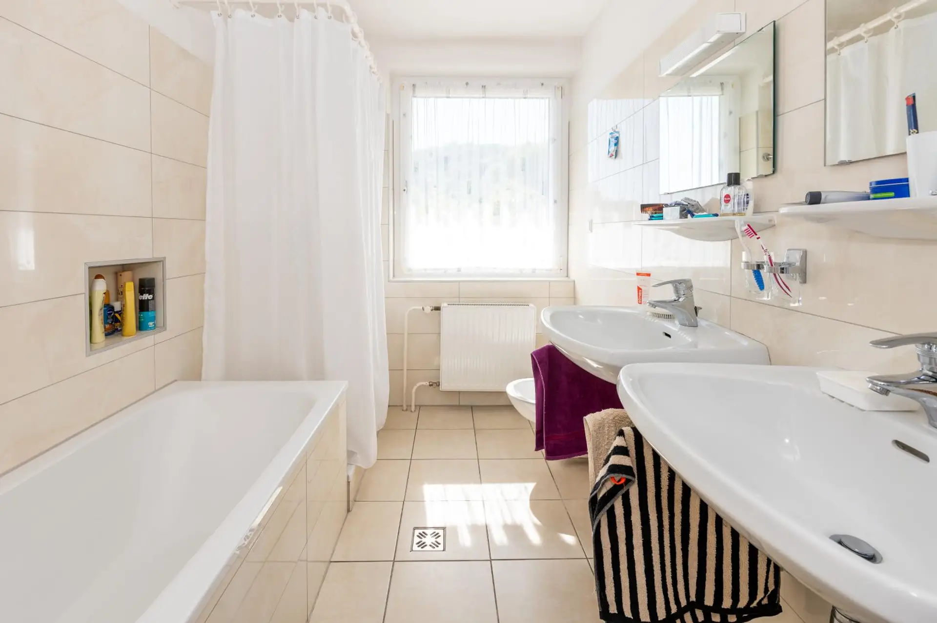 Das Obergeschoss überzeugt mit einem gemütlichen Wohn-/Essbereich, der durch den Zugang zum Balkon noch großzügiger wirkt. Ein weiteres Badezimmer sowie eine zweite Küche bieten zusätzlichen Komfort und machen diesen Bereich auch ideal für Mehrgenerationenwohnen oder eine separate Nutzung.