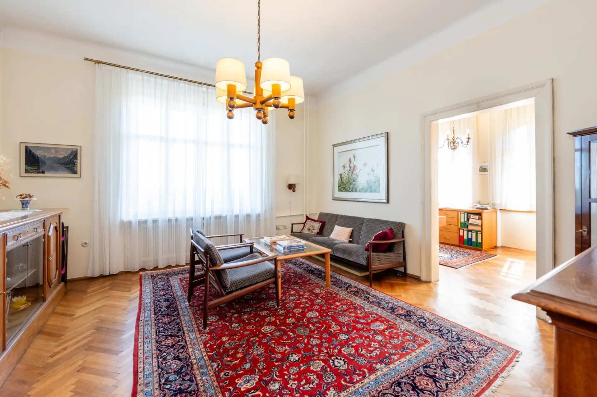 Der Ziegelmassivbau bietet großzügige hohe Räume, die ein elegantes Raumgefühl schaffen. Originale Parkettböden unterstreichen den historischen Charakter des Hauses und lassen sich wunderbar mit modernen Elementen kombinieren.