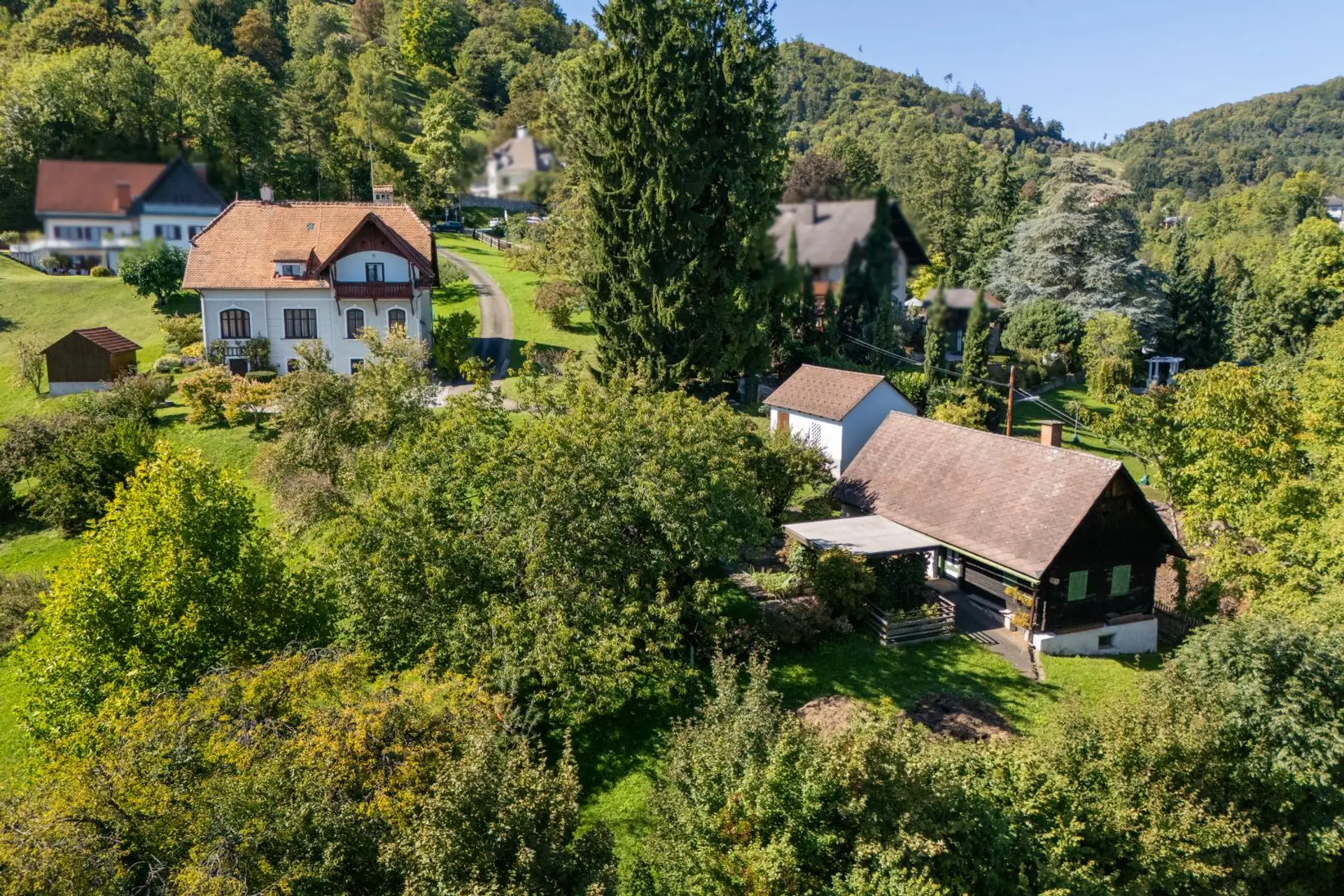 Die Liegenschaft befindet sich in leichter Hanglage, wodurch sich von den zwei Balkonen ein atemberaubender Blick über Graz sowie zur Kirche St. Johann und Paul eröffnet. Im Jahr 1967 wurde es durch einen Zubau mit südseitig ausgerichteter Terrasse und separatem Eingang erweitert.