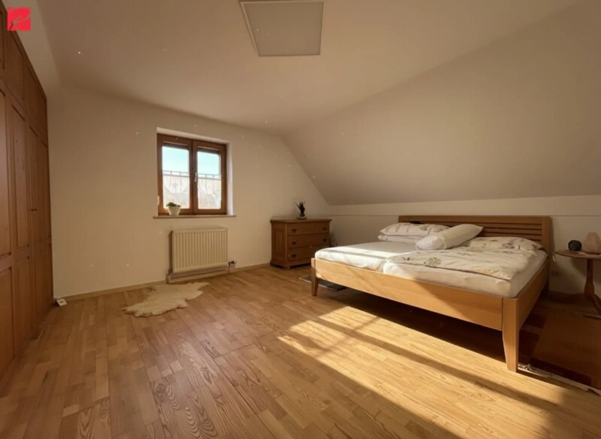 Dieser stilvolle Familientraum ist sehr gut aufgeteilt: eine moderne Küche, ein geräumiges Vorzimmer, ein lichtdurchfluteter Essbereich, ein großzügiger Wohnbereich, zwei Badezimmer und drei freundliche Zimmer im Obergeschoß hält diese Liegenschaft für Sie bereit. Im Vorzimmer wird der Schmutz von den Schuhen abgefangen und Sie haben hier reichlich Platz für Schuhe und Ihre Garderobe. Die Küche ist mit modernen, cremefarbenen Hochglanz-Fronten, einem Abstellraum und hochwertigen Geräten ausgestattet. Dank der Kücheninsel haben Sie hier reichlich Platz, um Köstlichkeiten für Ihre Liebsten zuzubereiten. Der Essbereich ist mit einer südlichen Fensterfront ausgestattet, sodass Sie hier einen schönen Blick in Ihren Garten beim Essen genießen können. Der angrenzende, westlich ausgerichtete Wohnbereich bietet Zugang zur sonnigen Terrasse und dem Garten. Der zentral gelegene Kachelofen sorgt hier für wohlige Wärme an winterlichen Tagen. Im sanierten Badezimmer im Untergeschoß erwartet Sie eine Handtuchtrockner, eine Dusche, eine Toilette, ein Fenster, sowie ein Waschtisch mit Stauraum. Im oberen Geschoß sind alle Zimmer getrennt begehbar: zwei großzügige Schlafzimmer mit verbauten Kleiderschränken zur optimalen Nutzung der Dachschrägen (eines hiervon mit östlichem Balkon), sowie ein weiteres kleineres Zimmer mit Balkon. Zudem befindet sich das unsanierte Hauptbadezimmer mit Waschtisch, Toilette, Badewanne und Bidet, sowie verbaute Stauraummöglichkeiten für Handtücher, Bademäntel & Co im Obergeschoß.