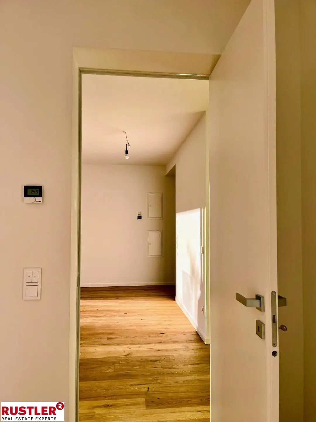Vom Vorraum aus gelangen Sie in den praktischen Abstellraum, das separate WC sowie in die offen gestaltete Wohnküche, die das Herzstück der Wohnung bildet. Diese wird durch eine moderne, hochwertig ausgestattete Küche stilvoll ergänzt.